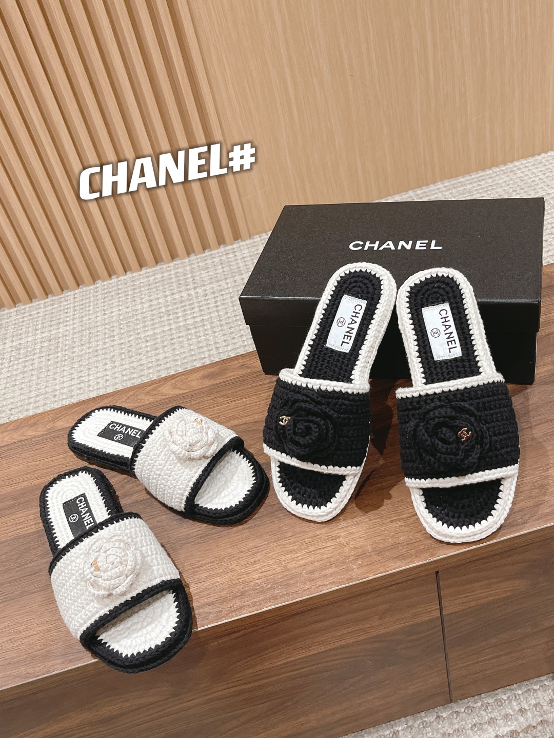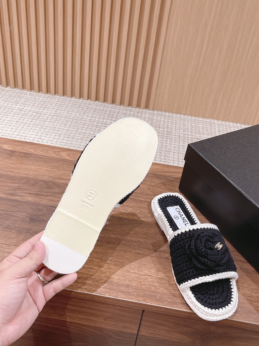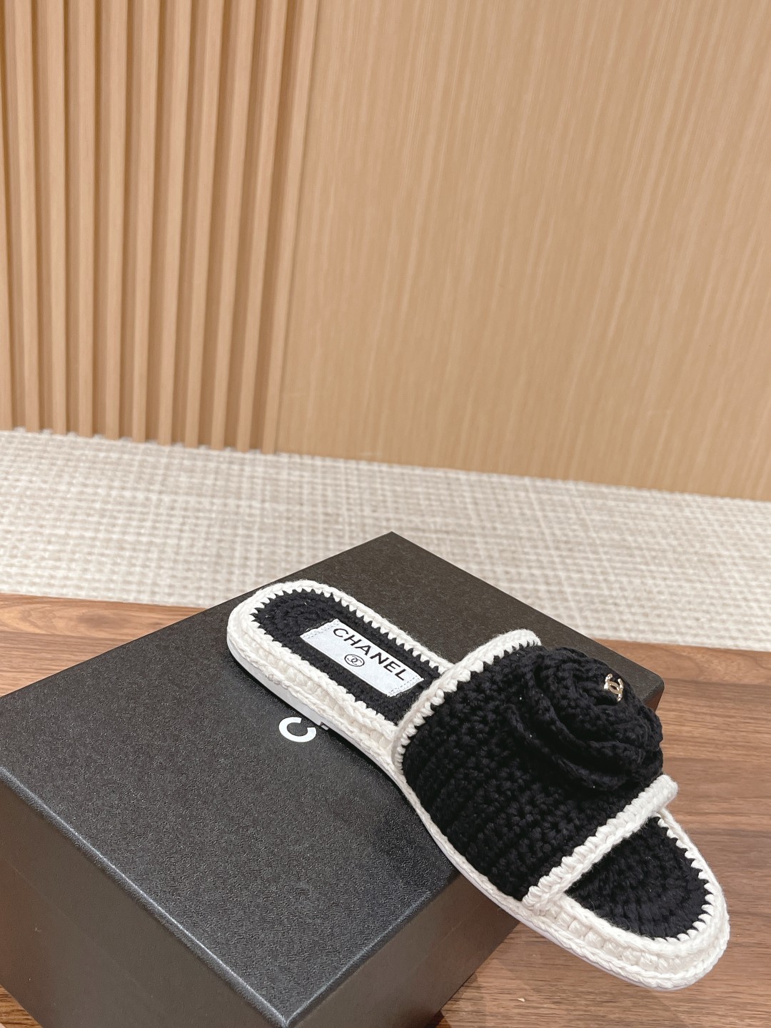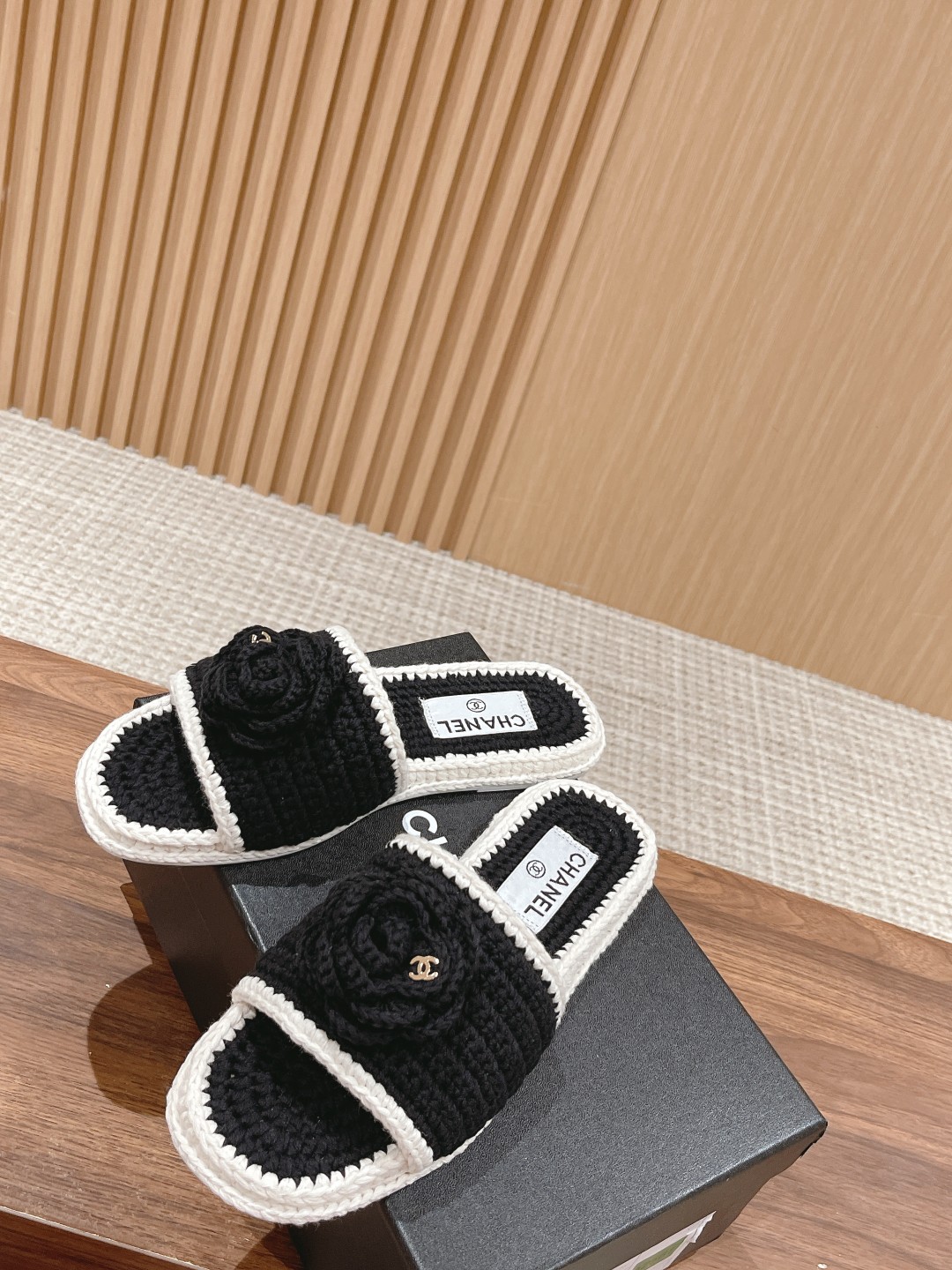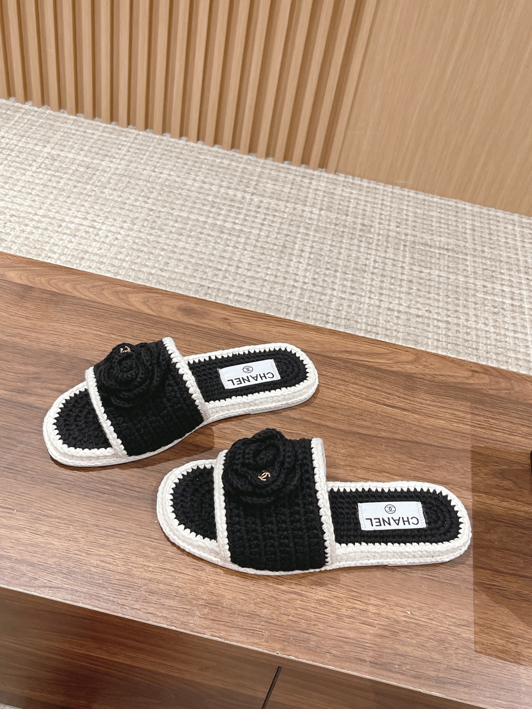 CHANEL 香奈儿新款钩花毛线山茶花蜜儿拖