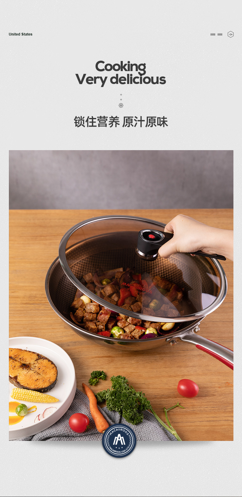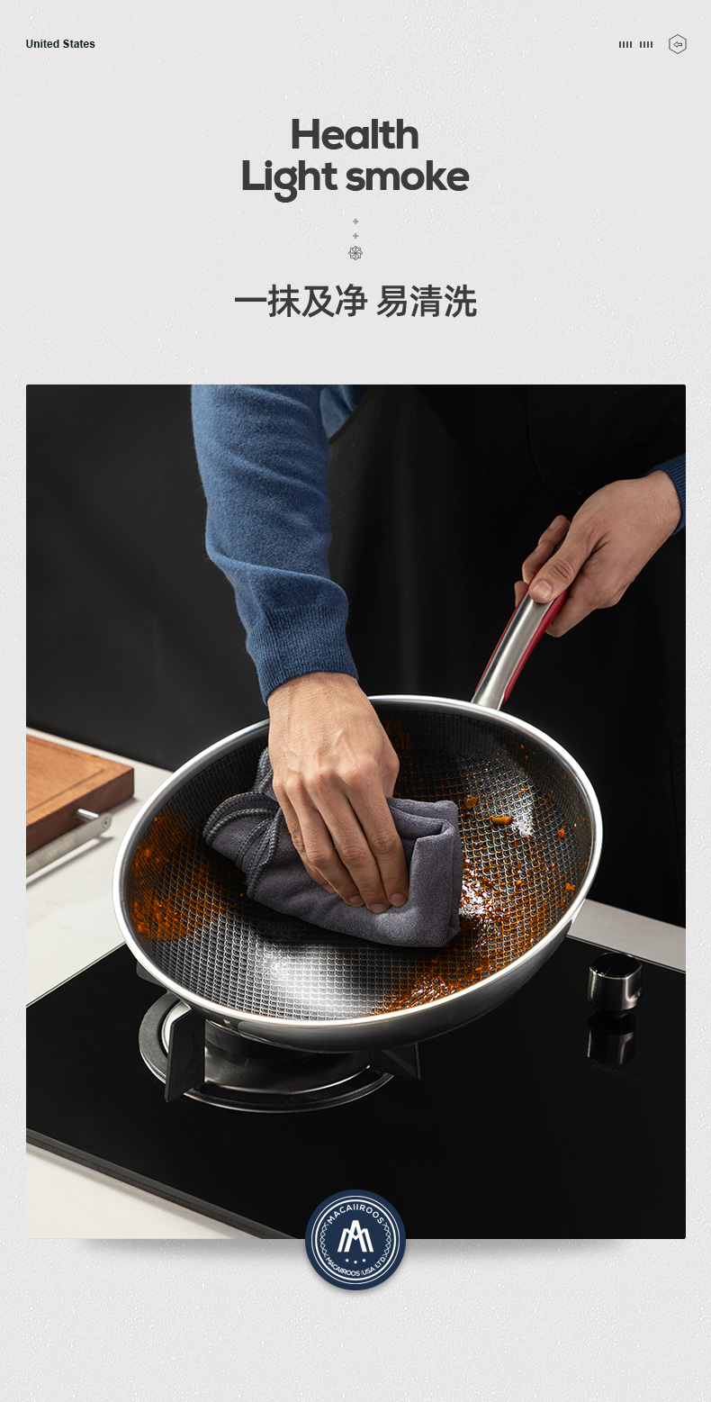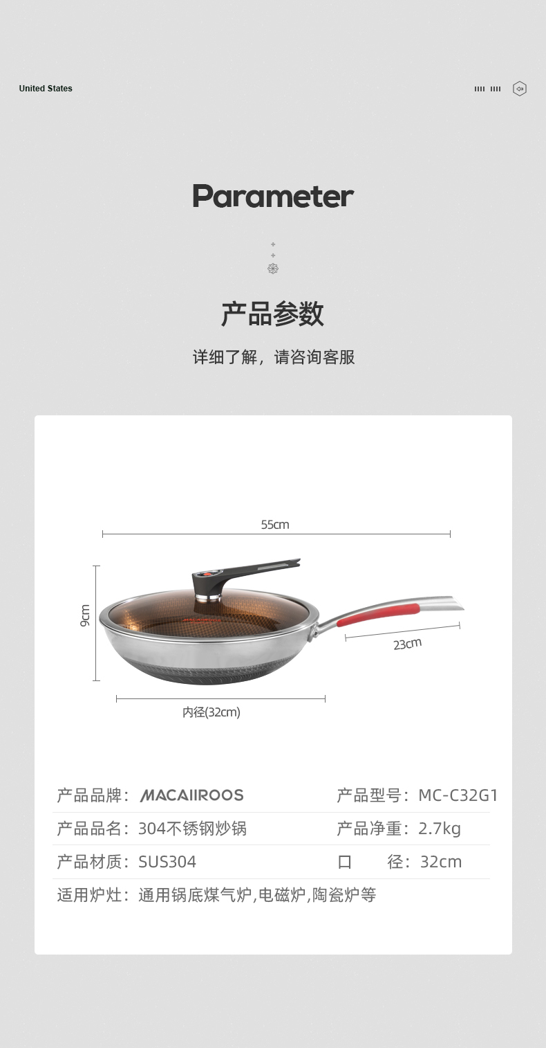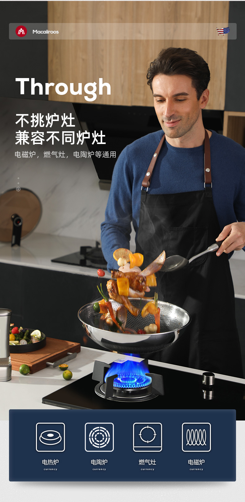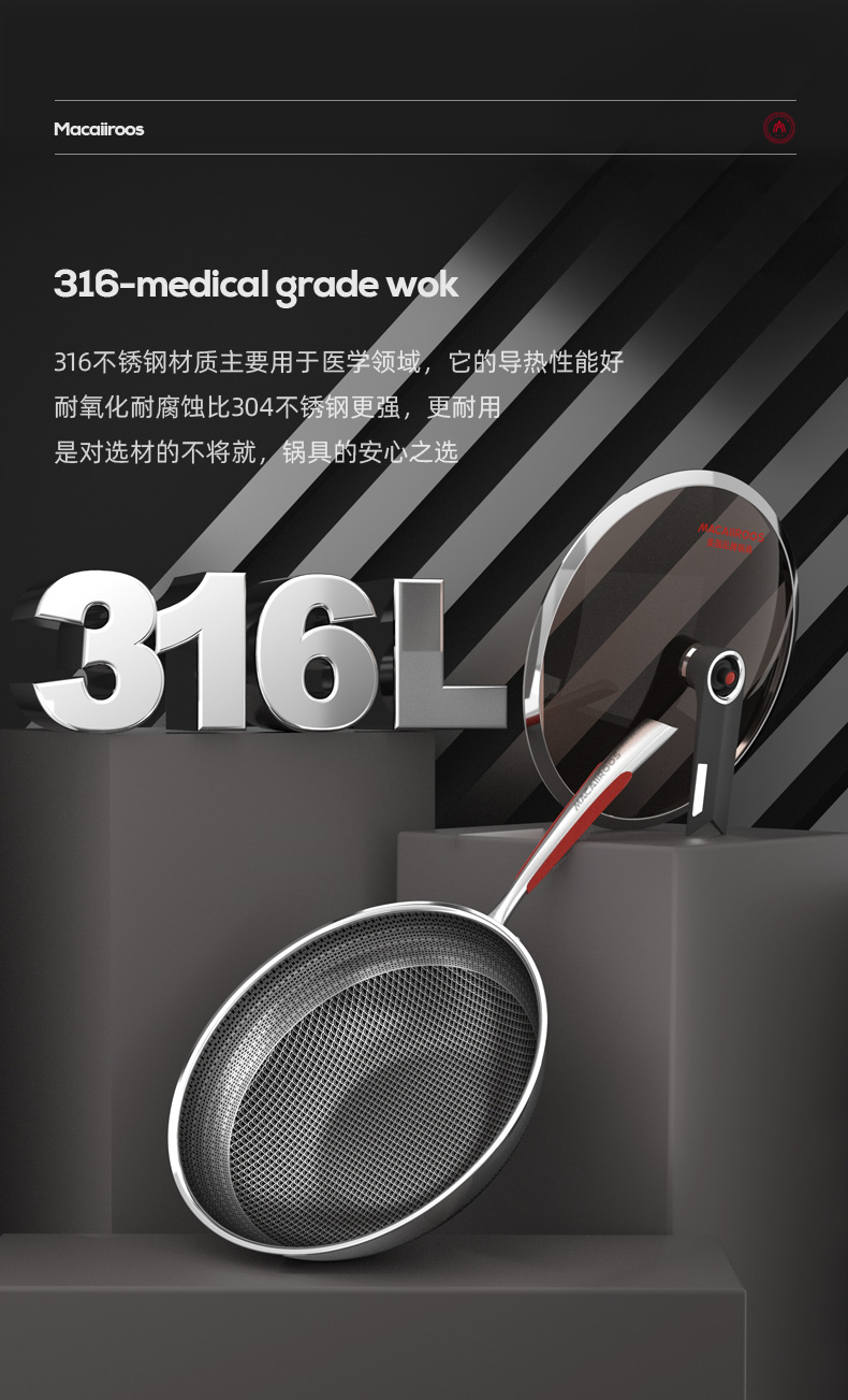 Macaiiroos 炒锅炒菜锅不锈钢不粘锅可立盖电磁炉燃气灶通用迈卡罗 MC-C3261(316材质)
