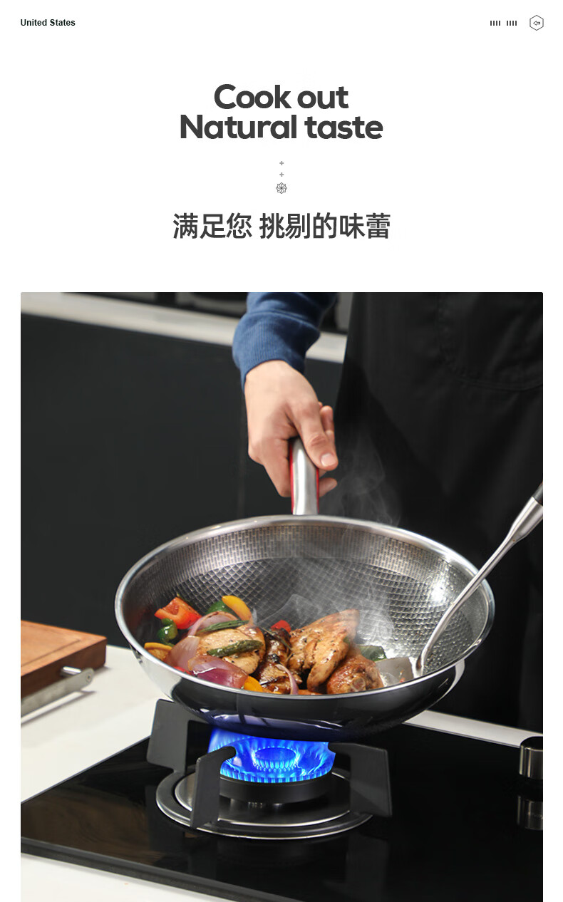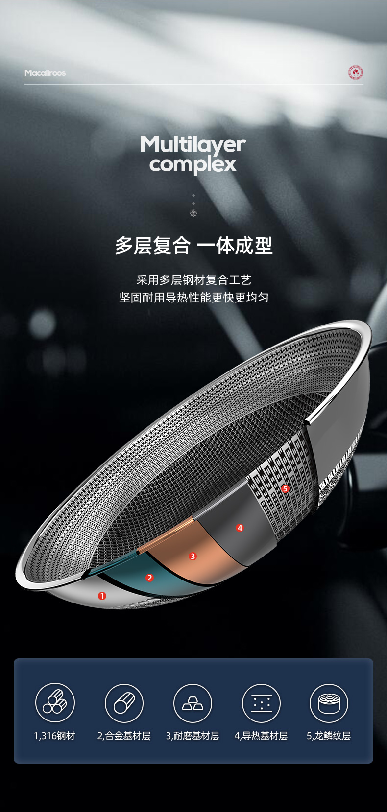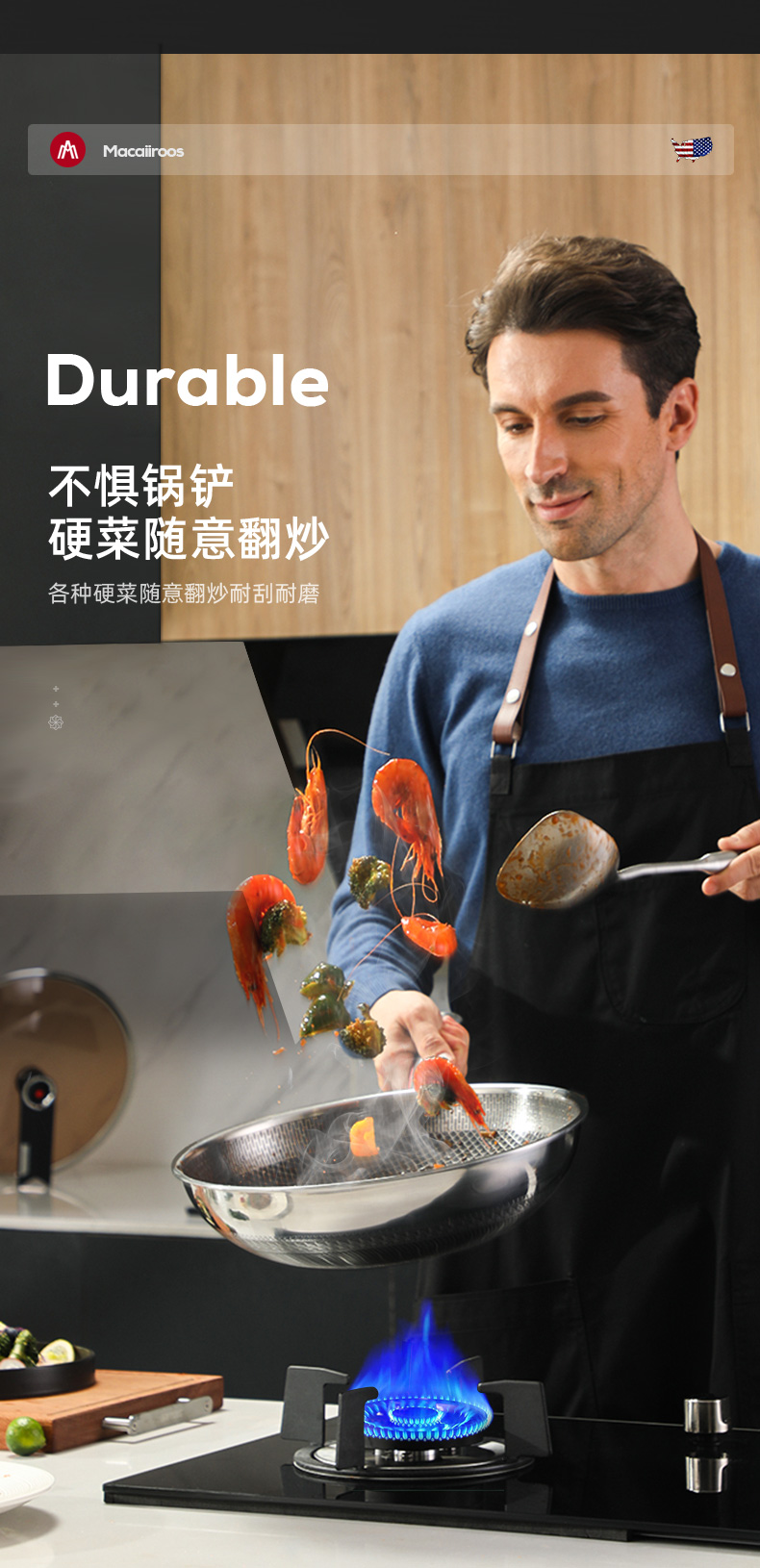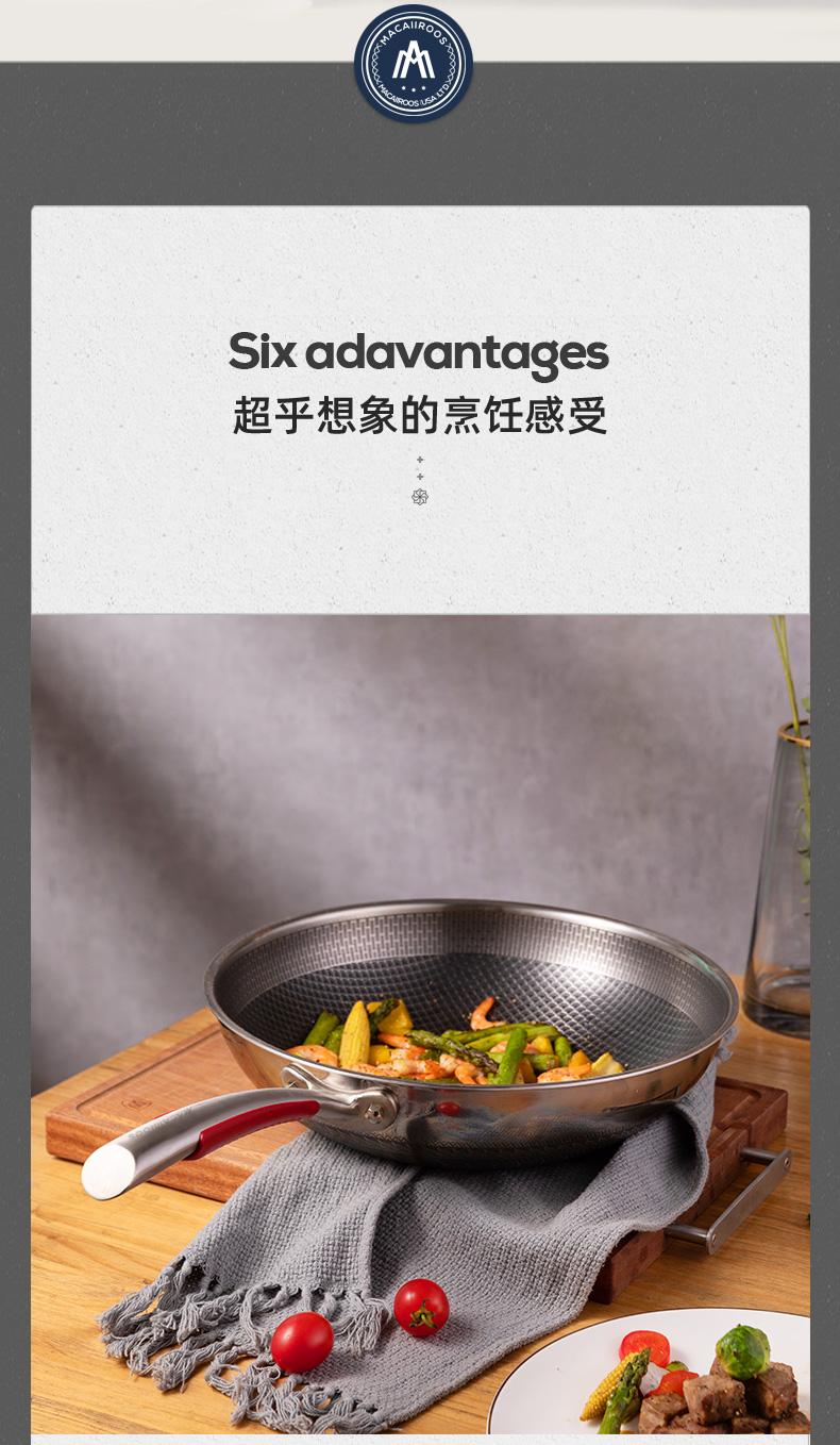 Macaiiroos 炒锅炒菜锅不锈钢不粘锅可立盖电磁炉燃气灶通用迈卡罗 MC-C3261(316材质)