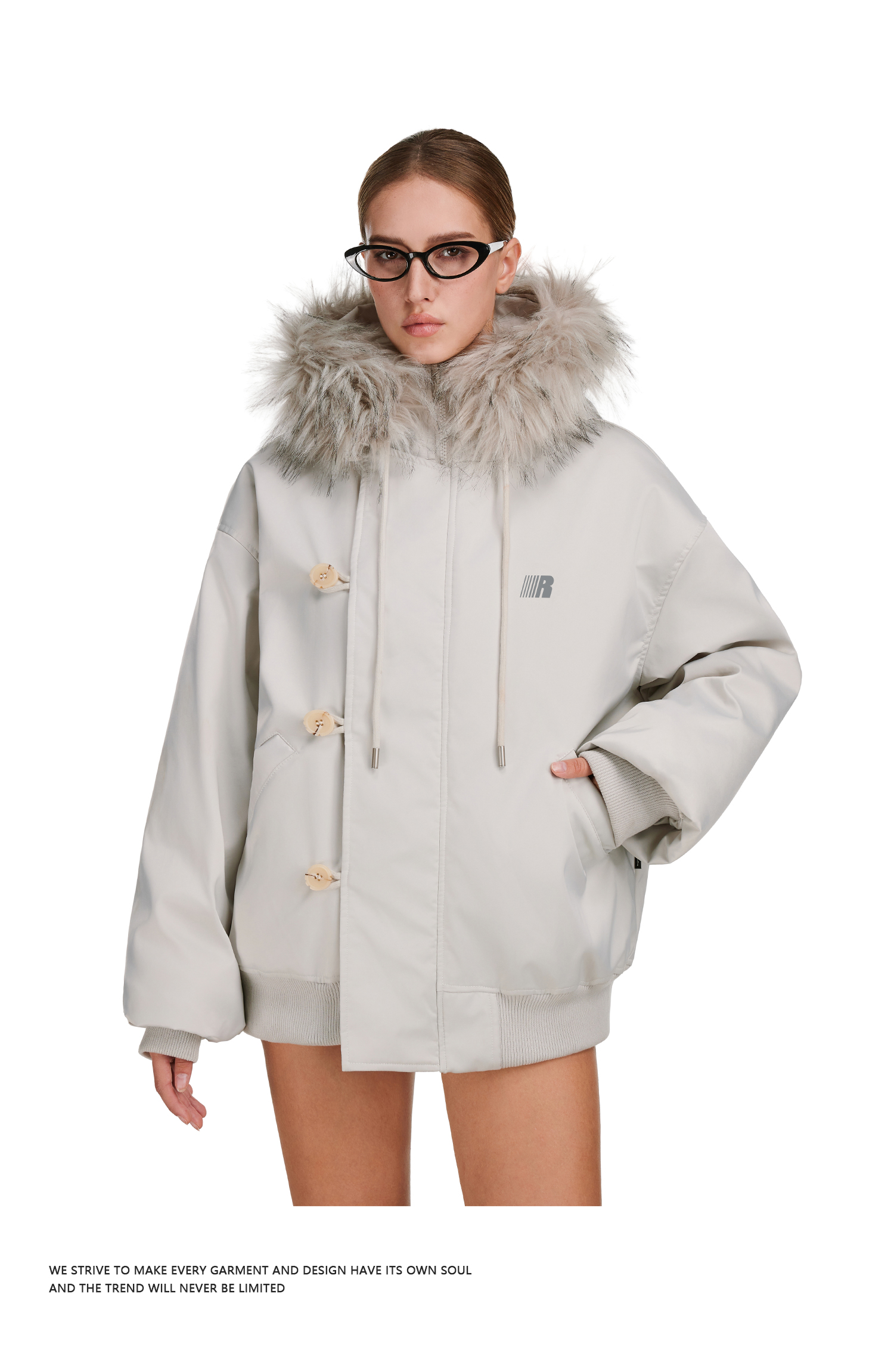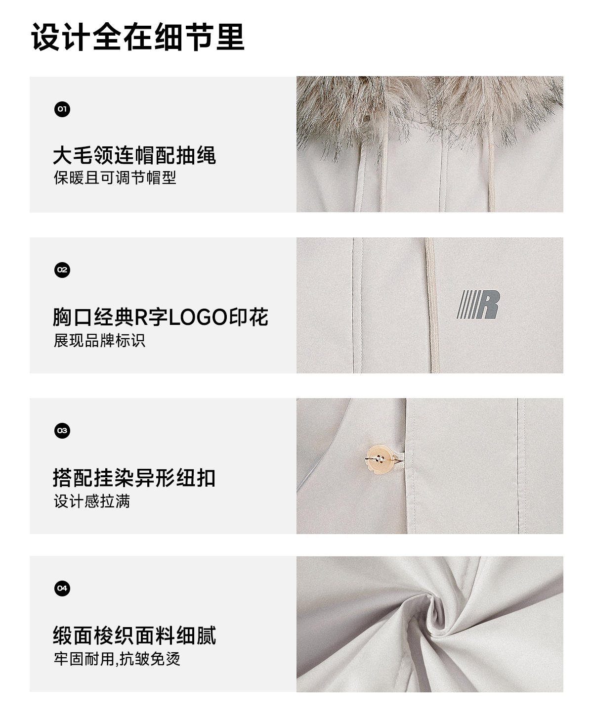 FDR官方店 R字可拆卸毛领羽绒服男女秋冬季加厚情侣装面包服外套