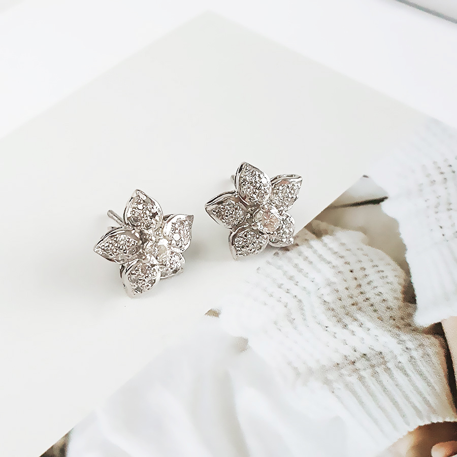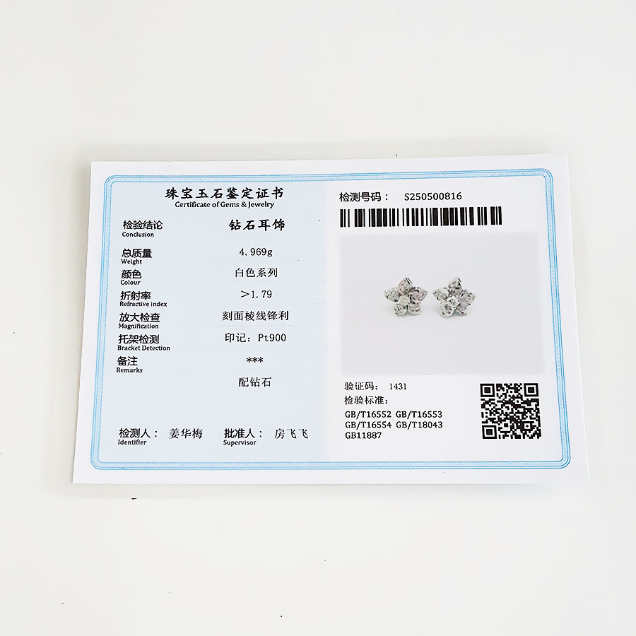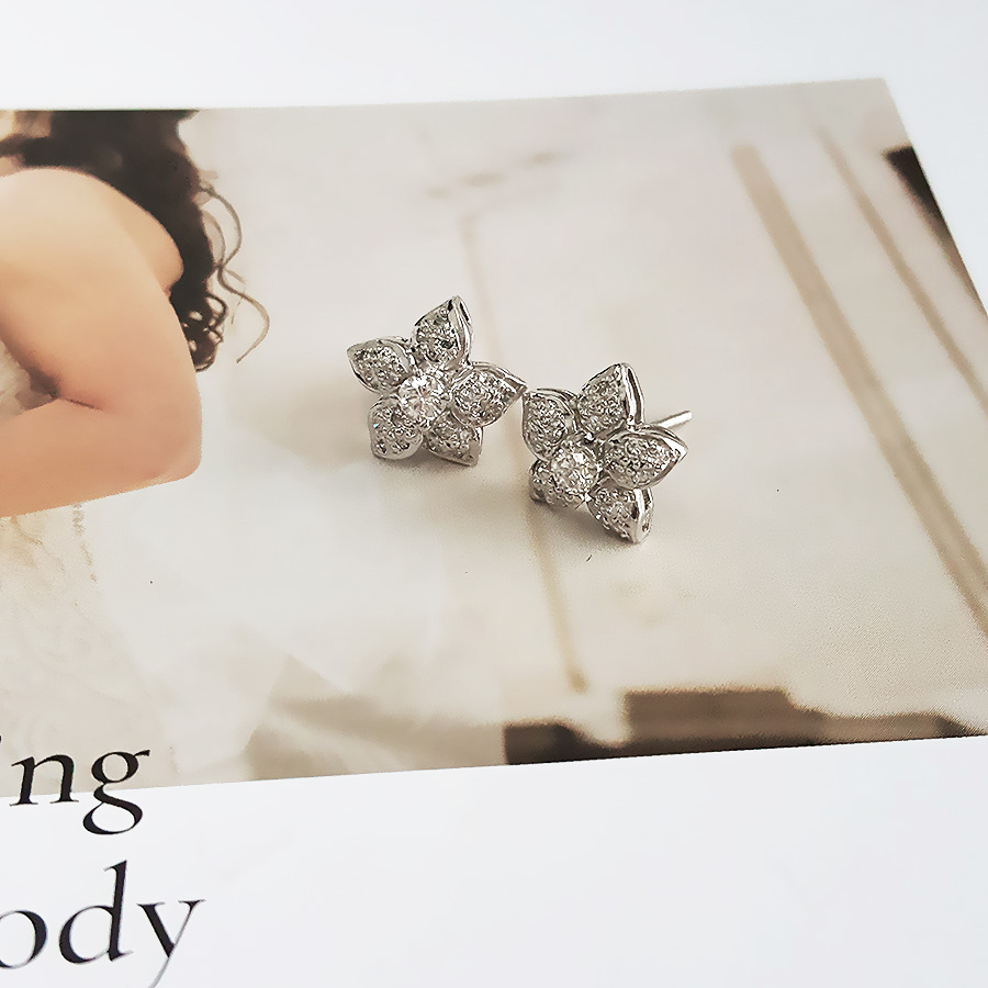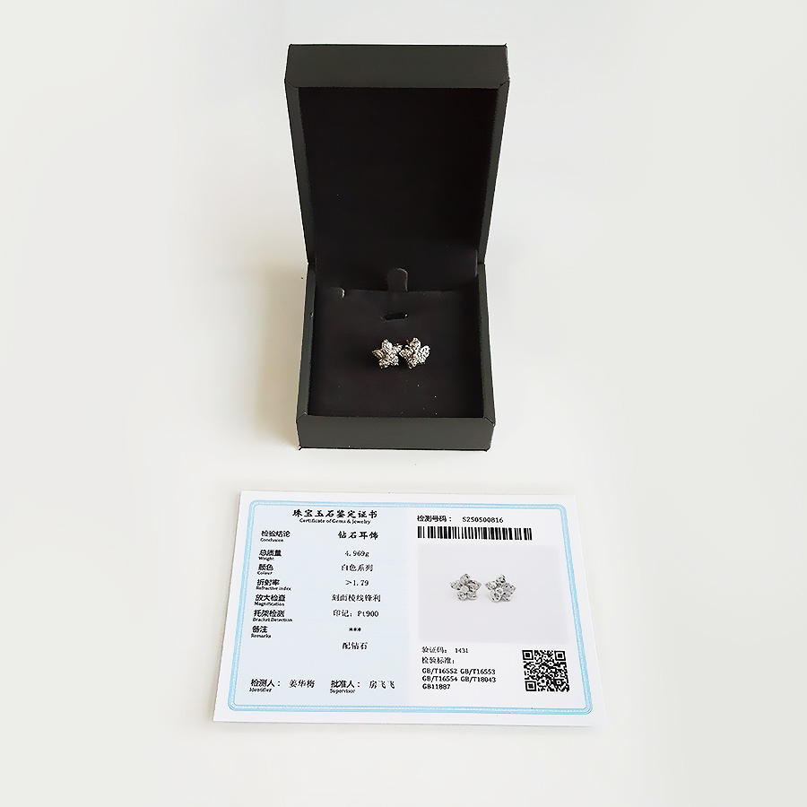 款式 | PT900铂金时尚设计款满钻近30分花朵造型钻石耳钉 |