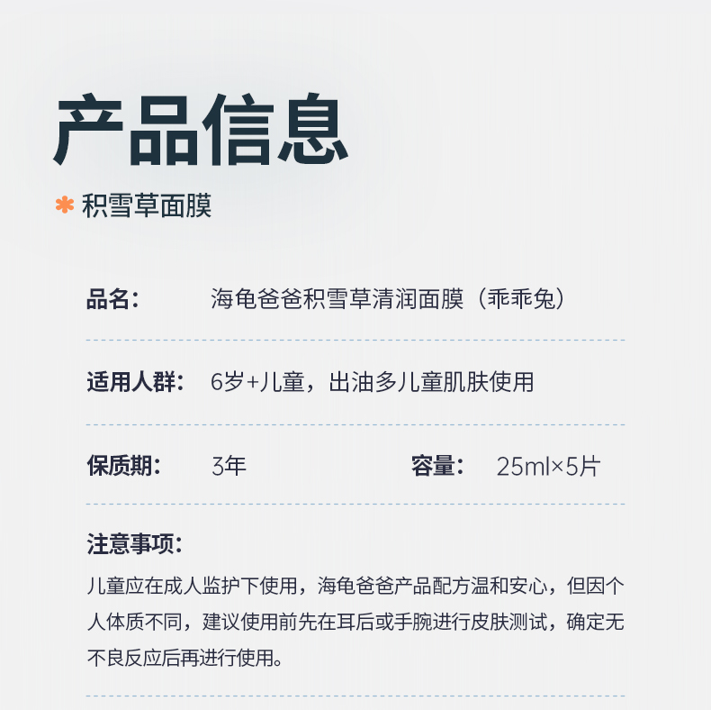 海龟爸爸积雪草清润面膜 商品图4