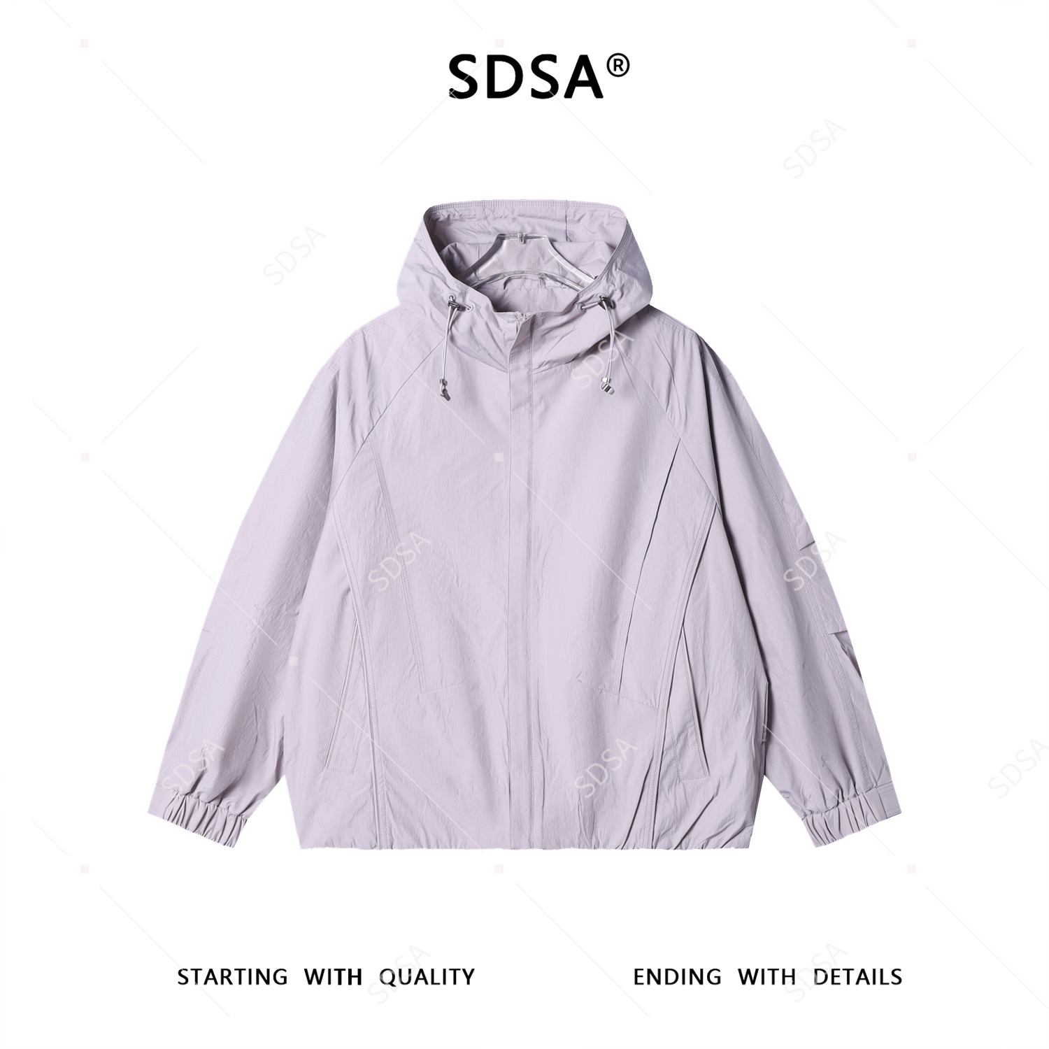 SDSA男士秋冬新款痞帅男装潮牌褶皱纯色拉链立领连帽夹克外套百搭