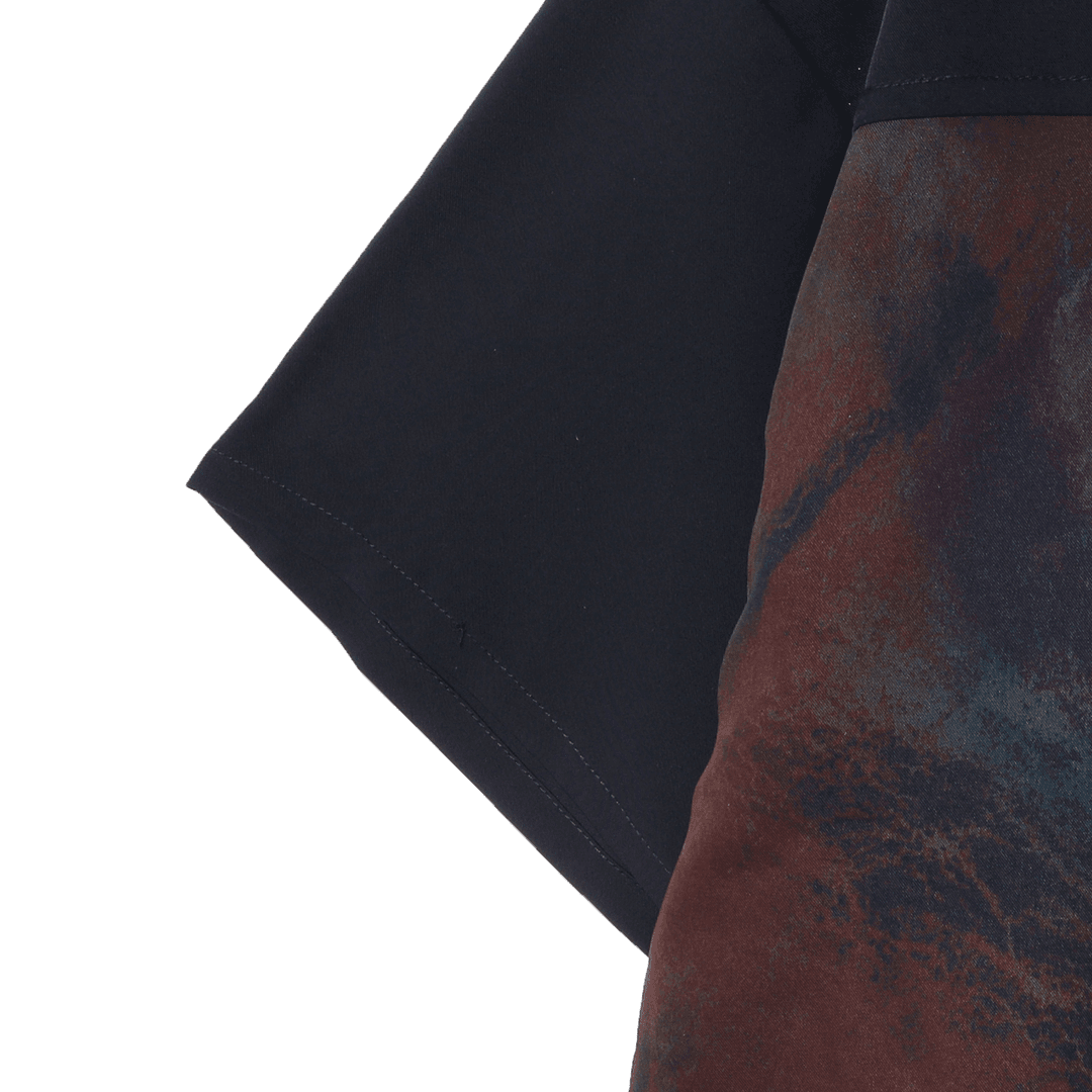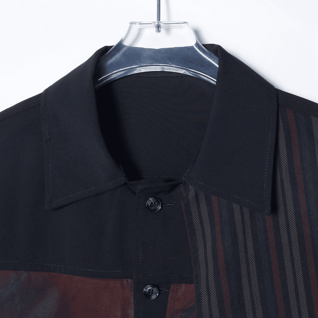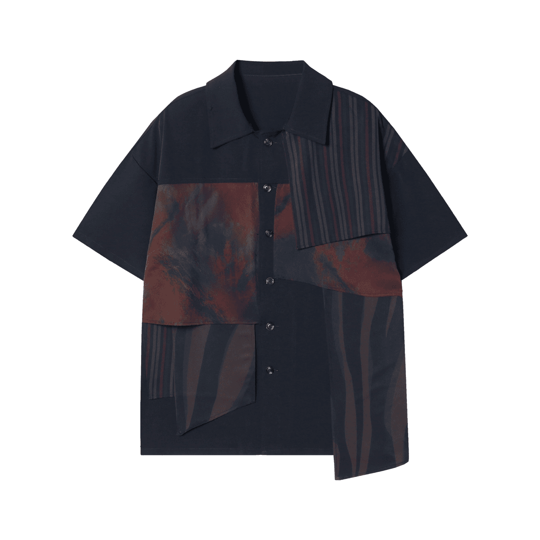 CS100夏季新款时尚潮流拼接男士衬衫小众宽松印花短袖复古设计个性上衣