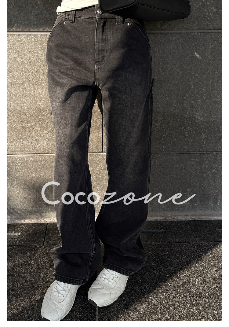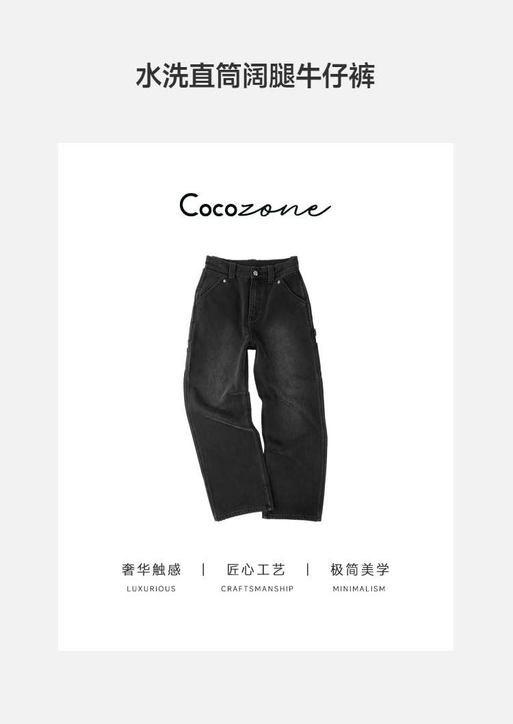 COCO ZONE 刘 一一 “十字花牛仔”水洗直筒阔腿牛仔裤 CD1A1828