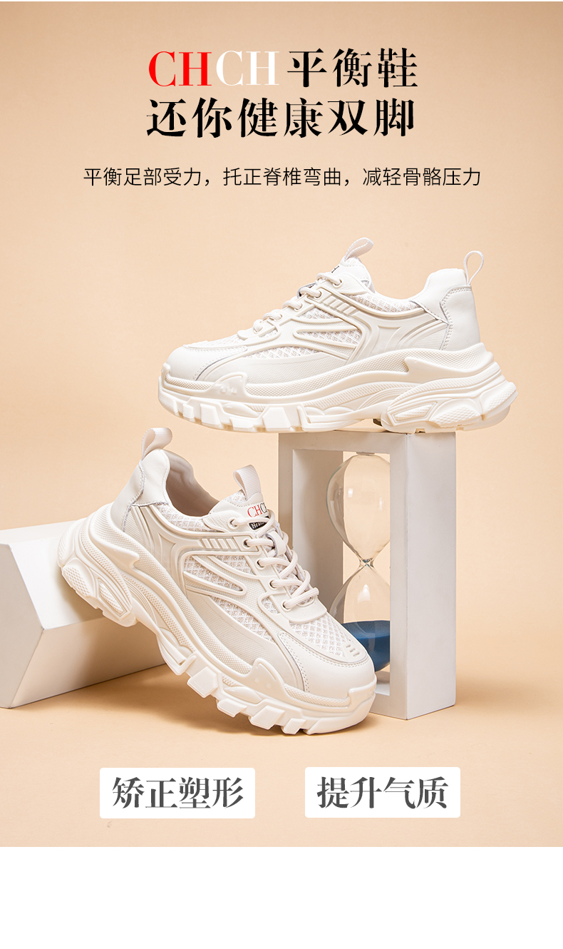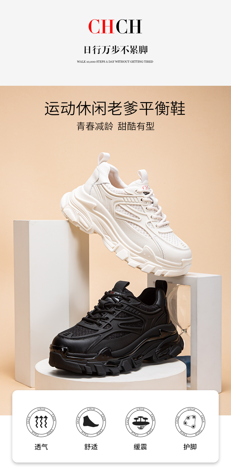 CHCH春夏新款牛皮拼接时尚年轻学生鞋休闲透气老爹鞋女鞋平衡鞋CN1B5661