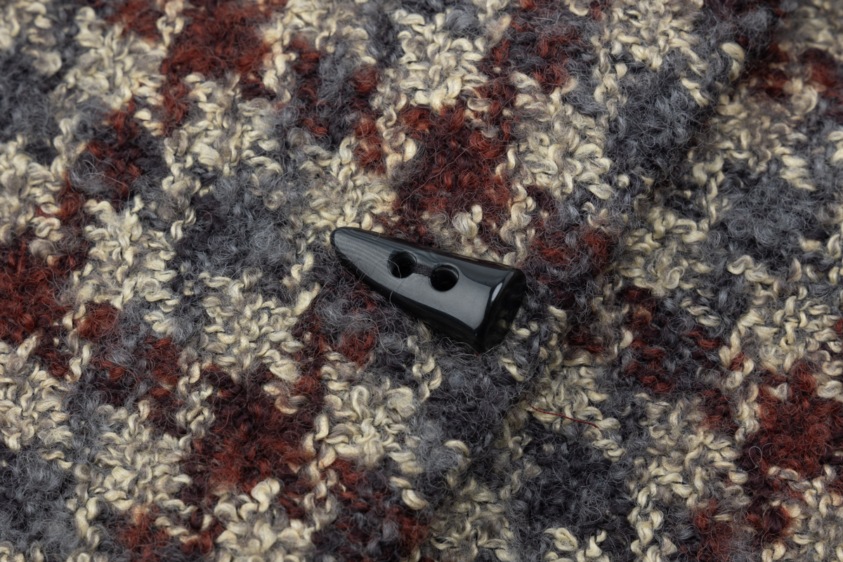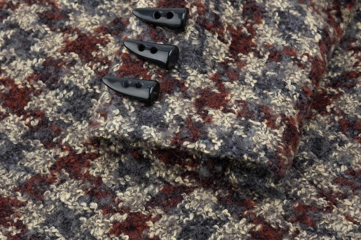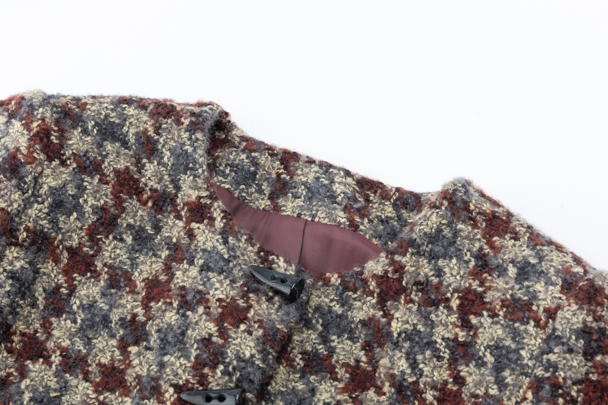 COCO ZONE 设计感撞色格纹外套牛角扣圆领上衣CC1D2358