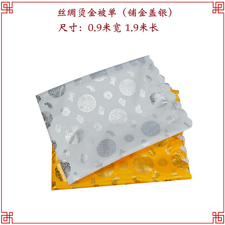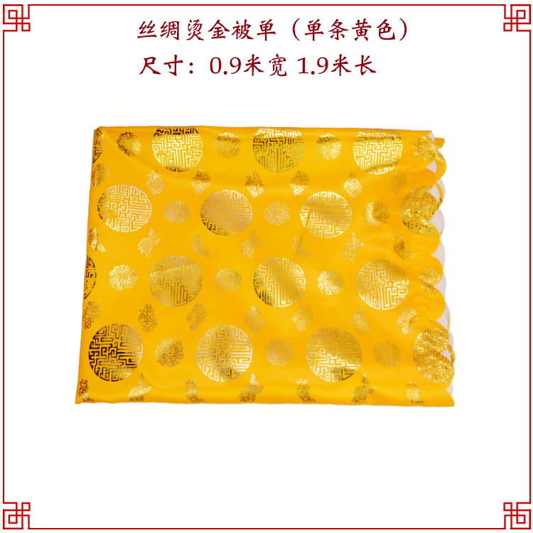 黄色 寿被男女丝绸烫金被单盖被垫单死人被褥