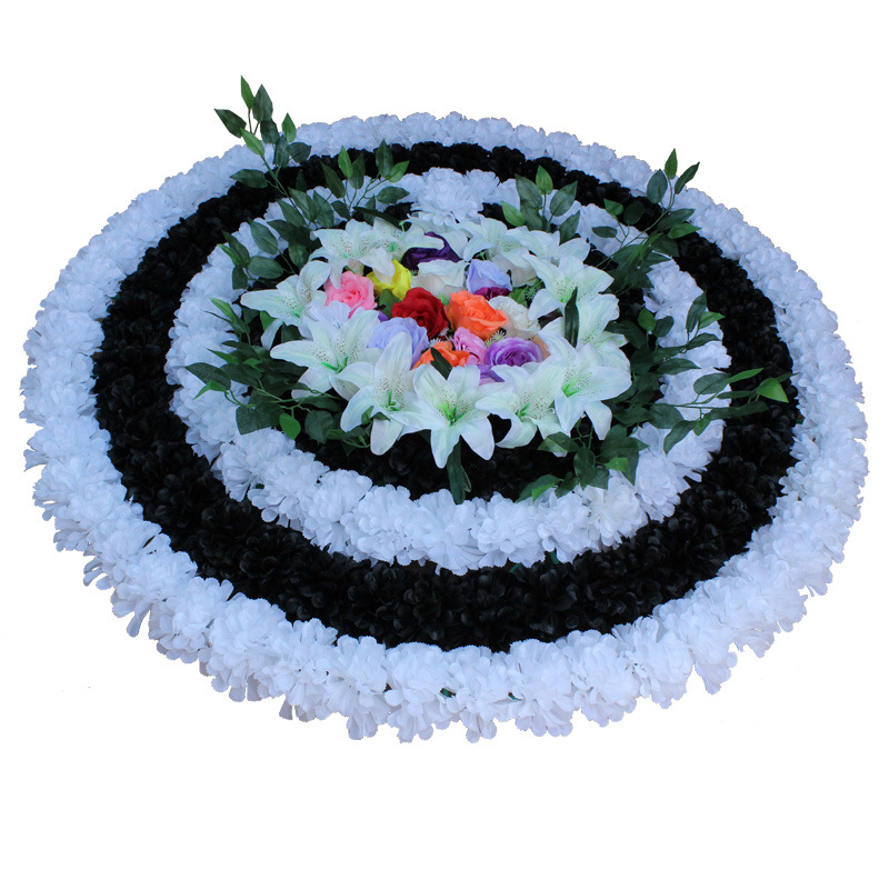 纯白+黑+纯白+黑仿真花圈1.3米绢花圈假花圈白事用菊花殡仪馆装饰花祭祀祭奠陵园
