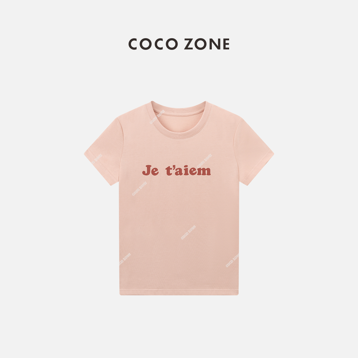 COCO ZONE ”蜜桃“简约百搭圆领上衣纯色字母短袖T恤CC1B1276