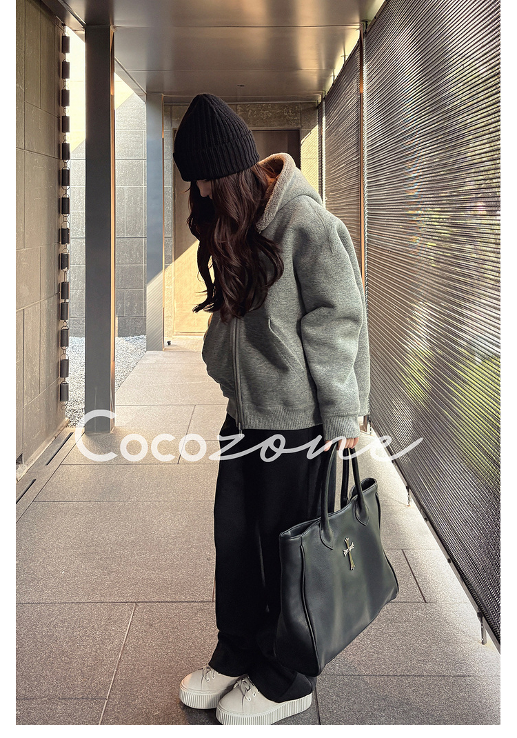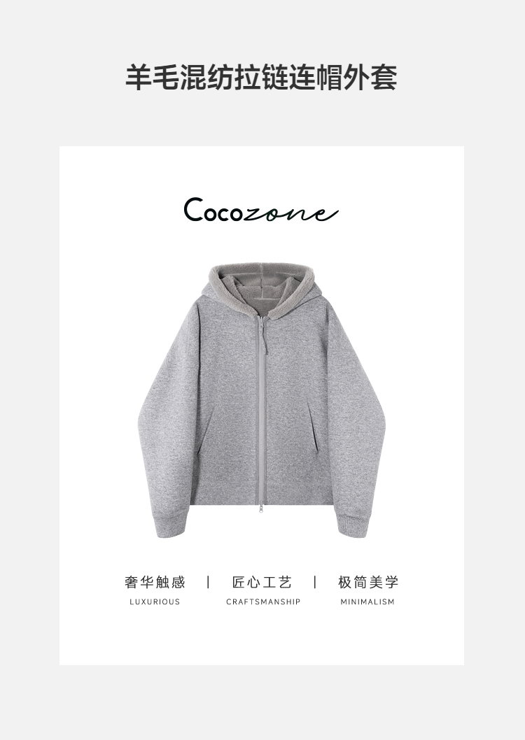 COCO ZONE 刘 一一 “肯豆女孩”羊毛混纺拉链连帽外套 CD1A1690
