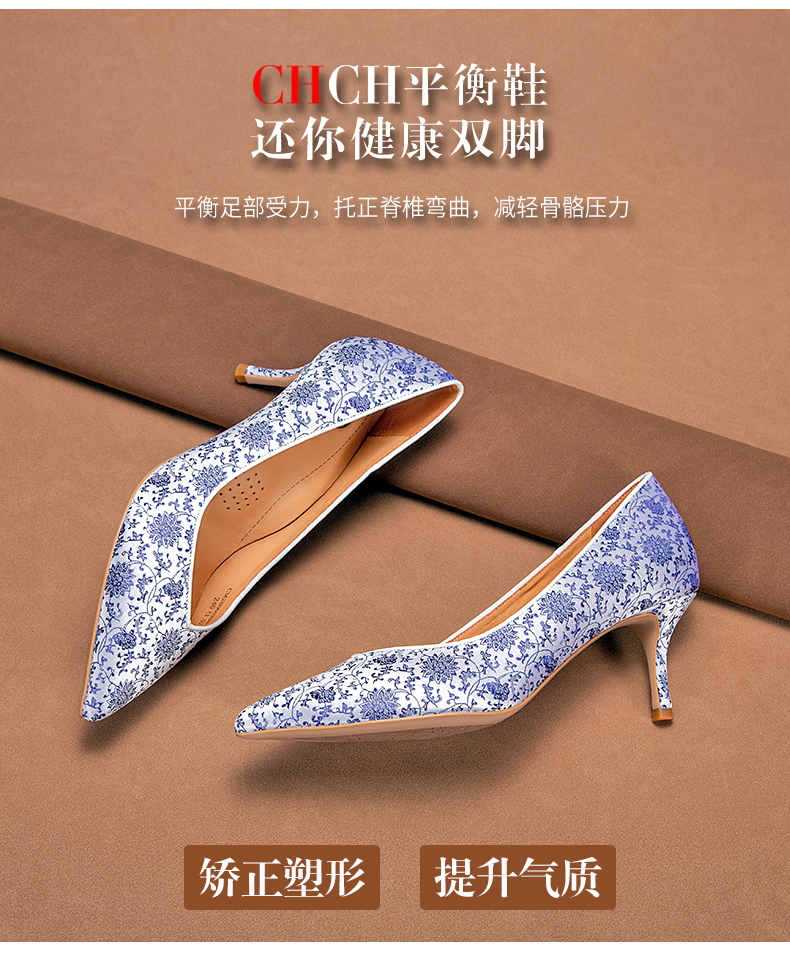 CHCH平衡鞋2024秋冬新品优雅细高跟鞋简约正装闪钻花卉一脚蹬尖头女鞋CO2B5071