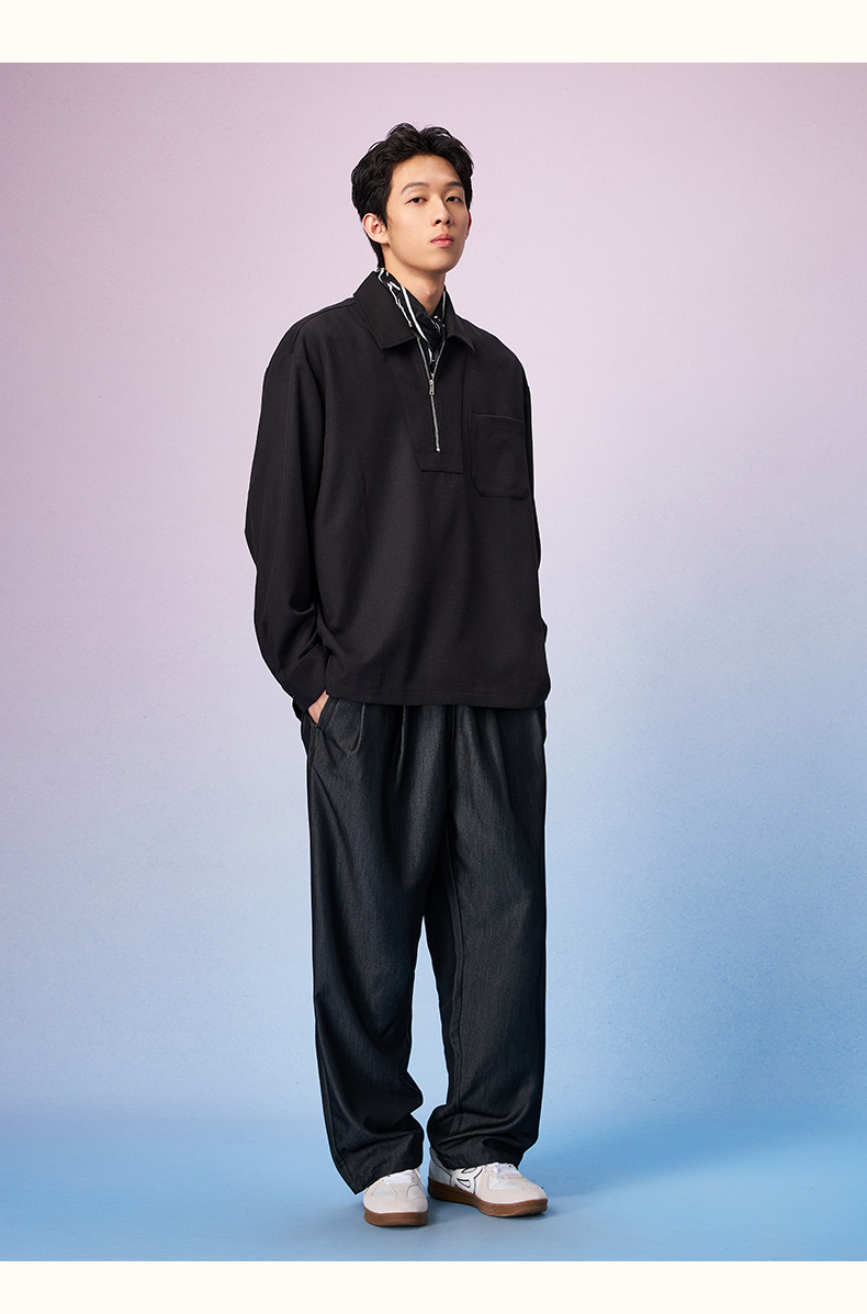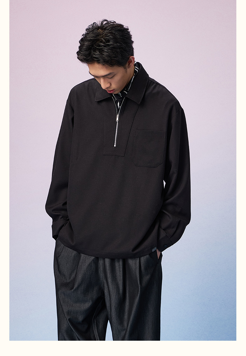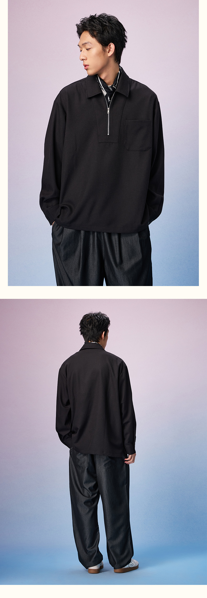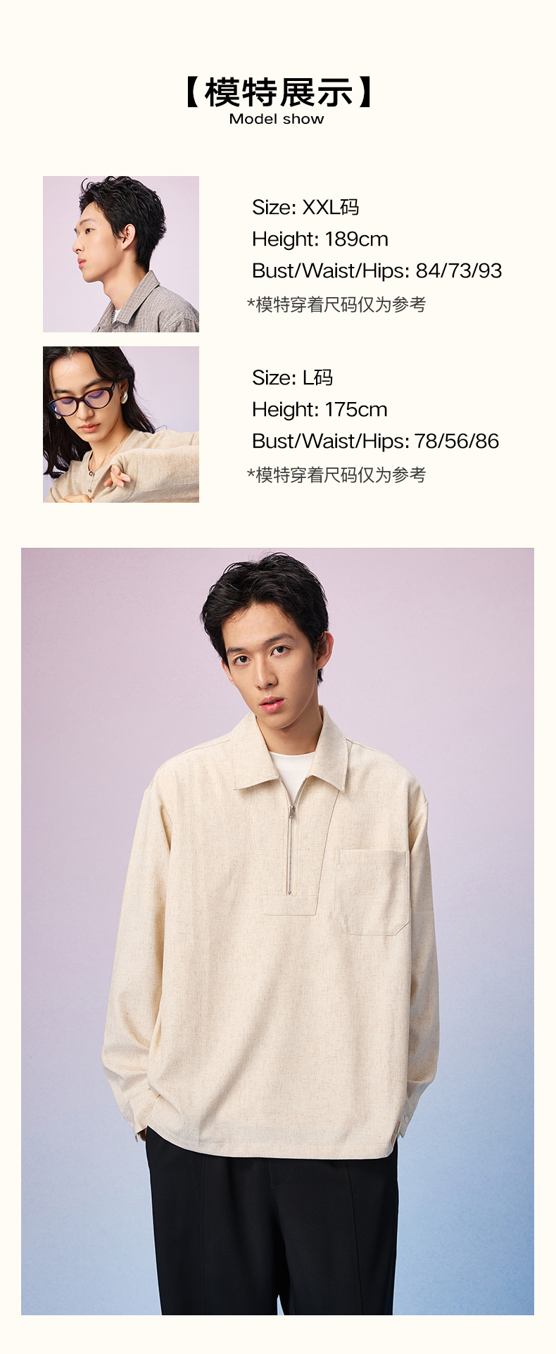 NPC潮牌亚麻混纺宽松落肩半开襟拉链衬衫男秋季上新NP57SH17