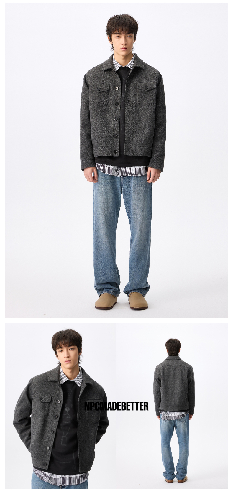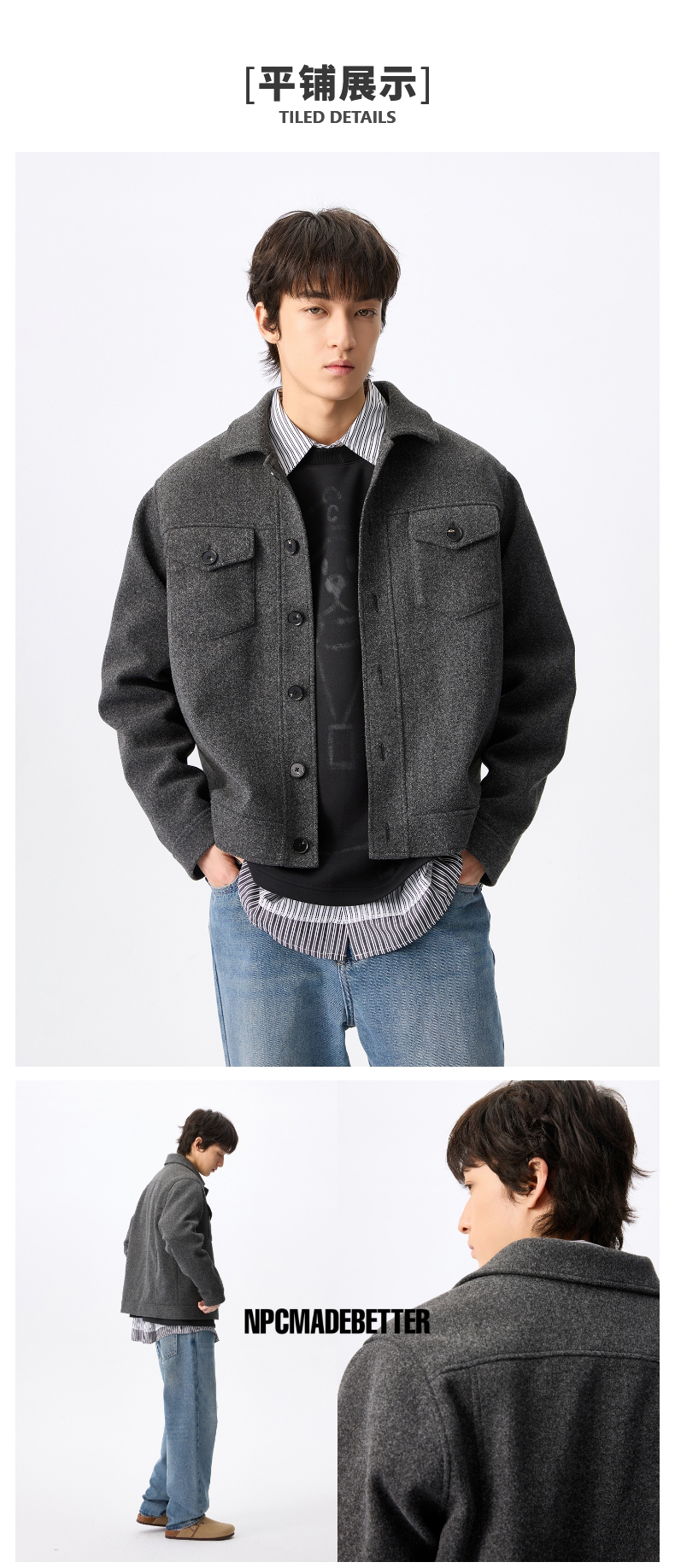 NPC潮牌复古老钱风双口袋翻领保暖夹克男潮流短款时尚NP4CTJ10