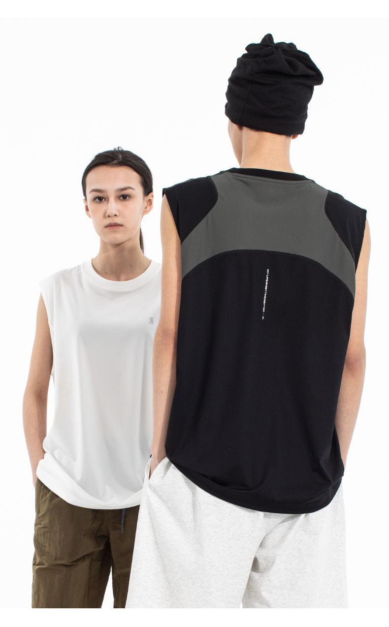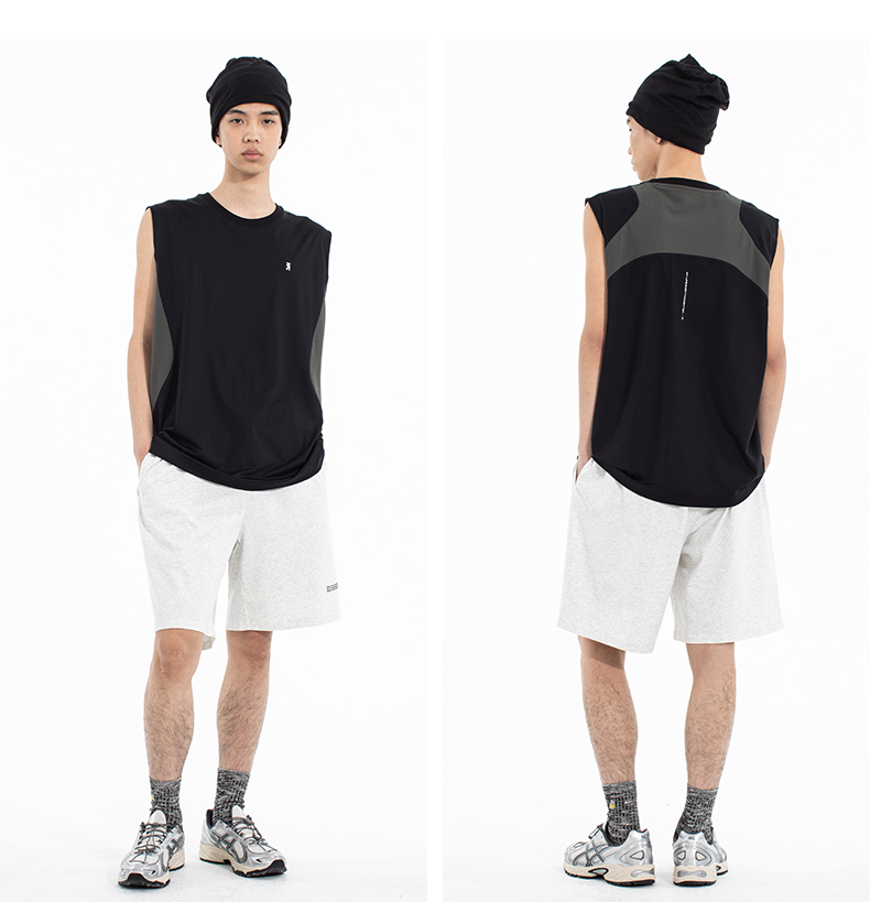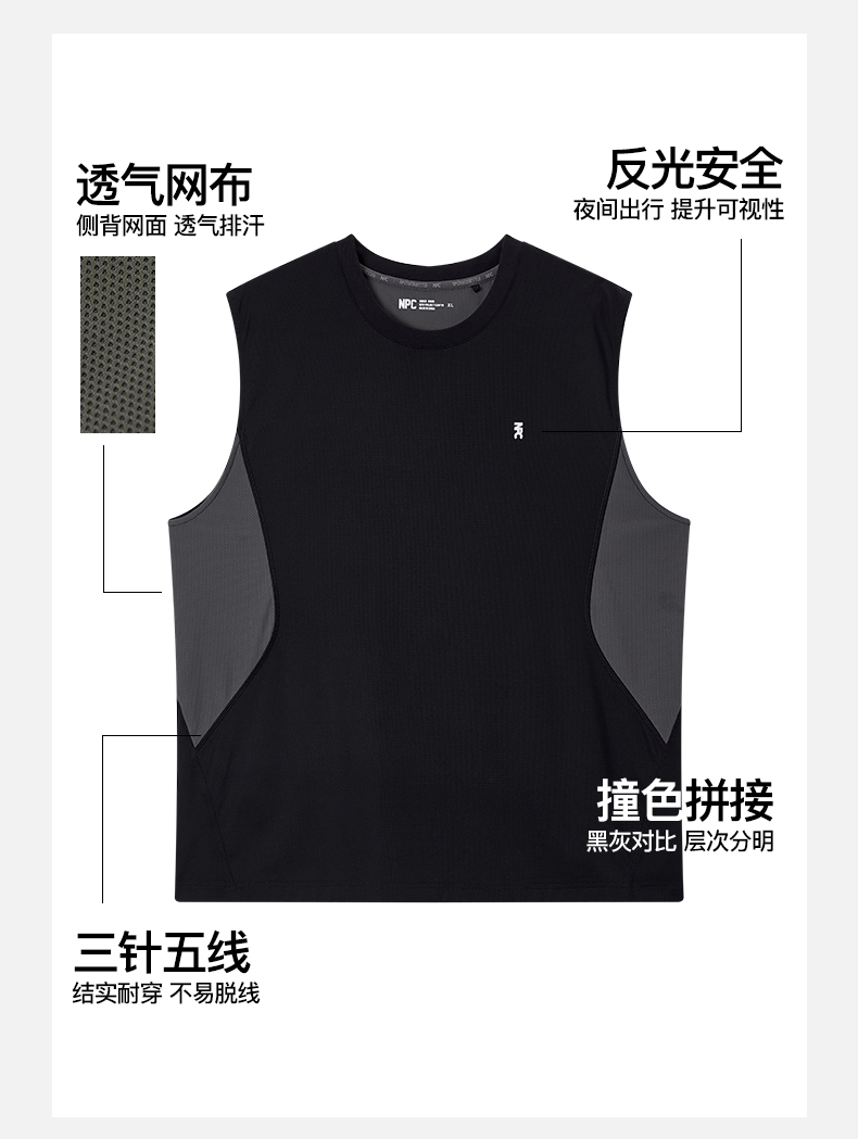 NPC潮牌撞色拼接网眼布3M反光logo无袖T恤男透气轻薄NP53TT18
