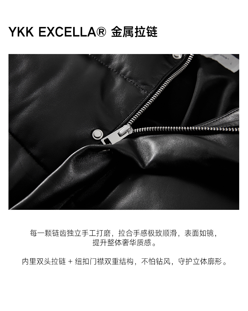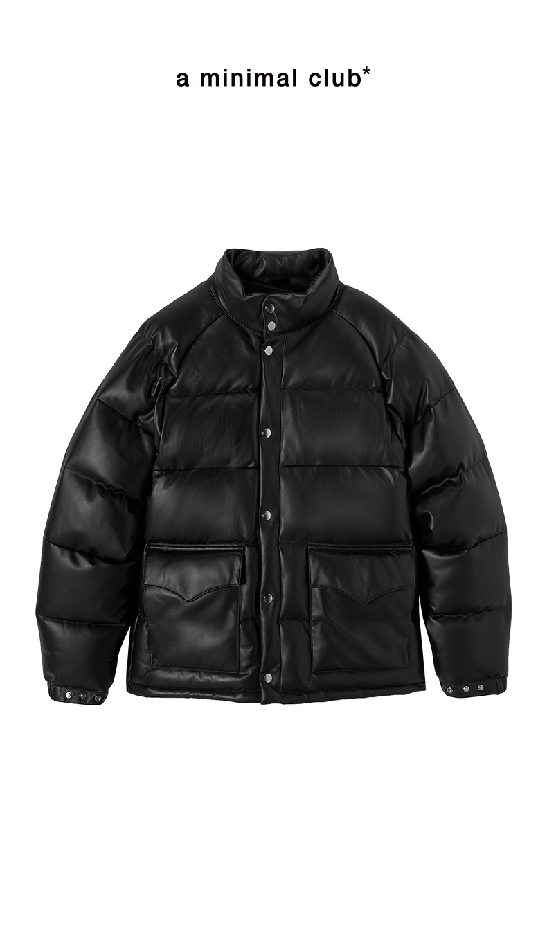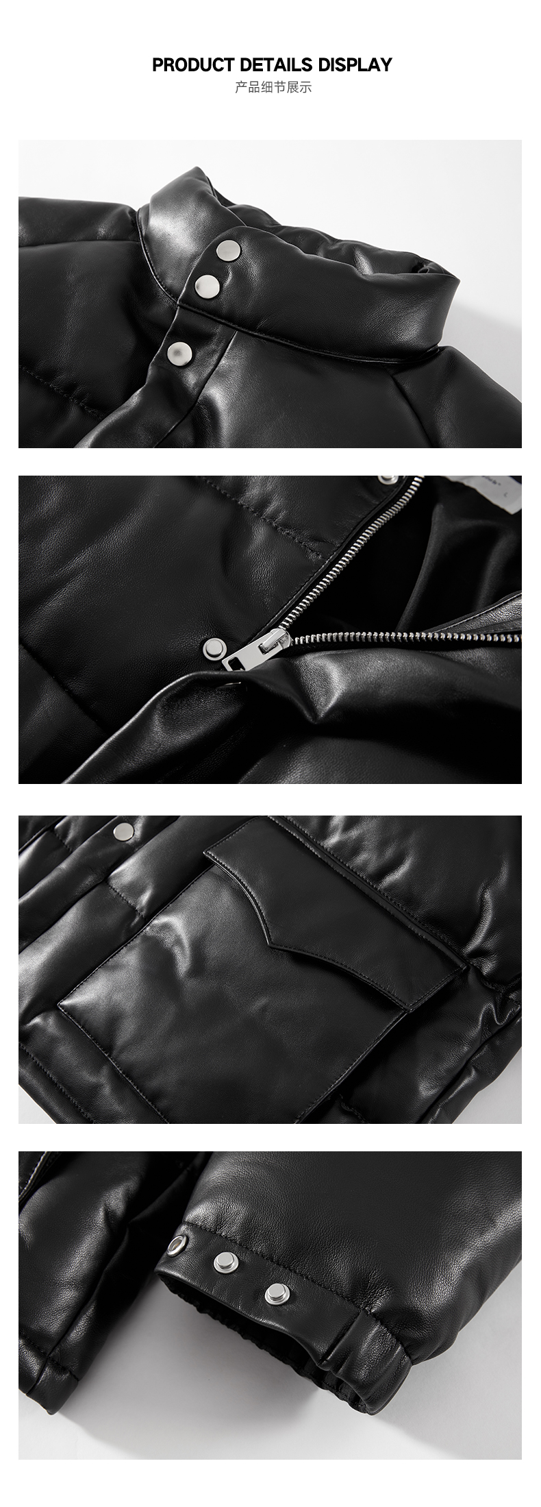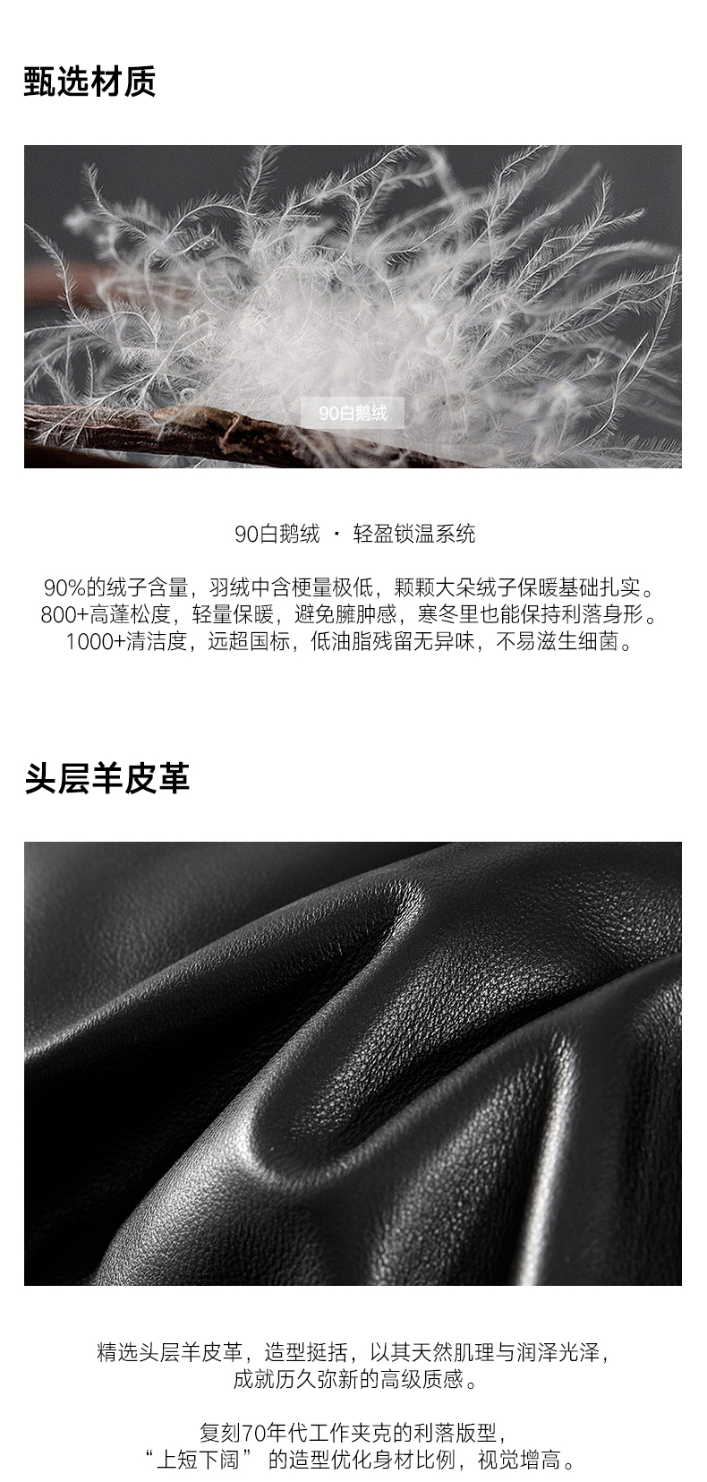 a minimal club复古100%绵羊皮革90鹅绒羽绒服立领短款AM5ADJ03