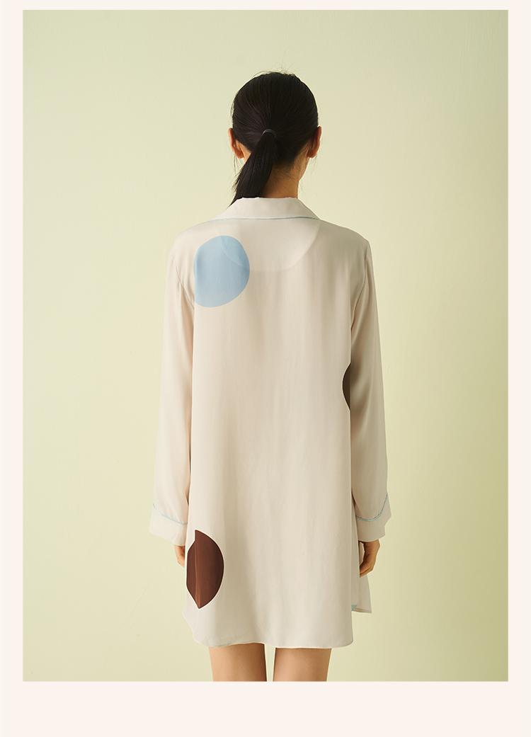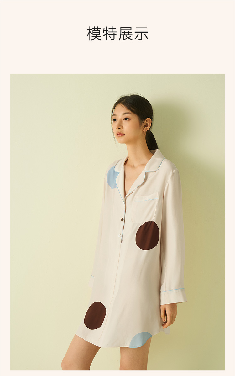 桑罗美拉德波点真丝长袖衬衫裙女短款简约可外穿睡裙睡衣24年新款
