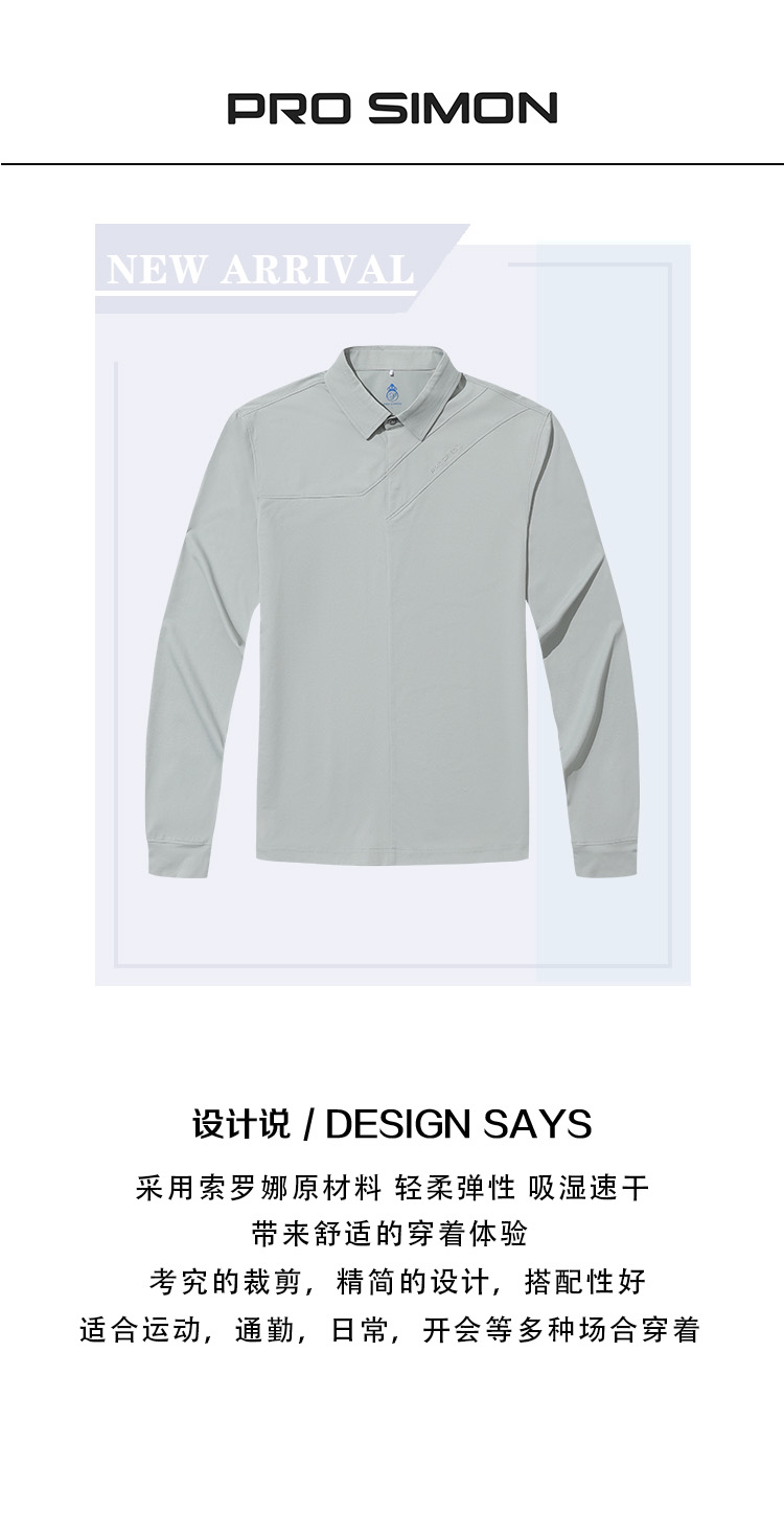 BNW-102B 【防晒 吸湿速干】PROSIMON高尔夫秋冬男款简约分割线长袖POLO衫