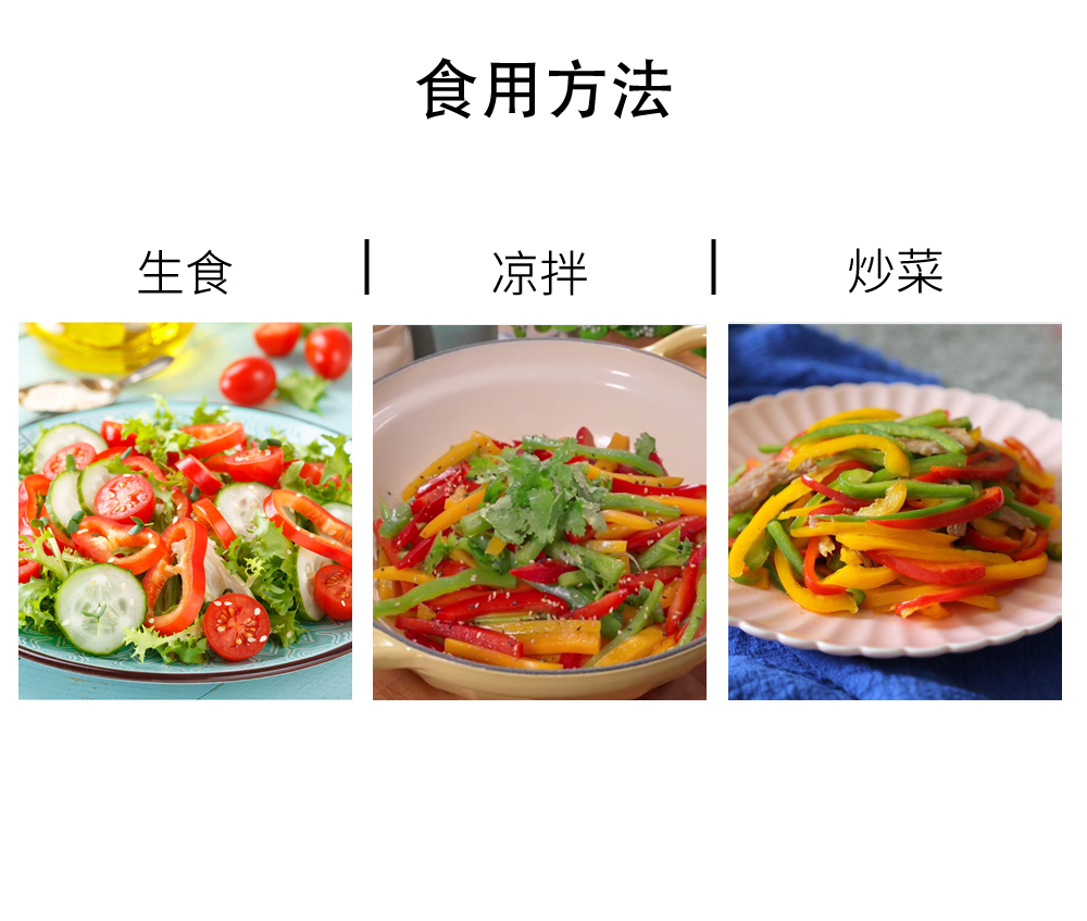 【保质期】7天左右,气温低,可常温保存,最佳温度是8~15度。气温高,建议放入保鲜袋,减少彩椒水分流失,密封后放冰箱冷藏保鲜。