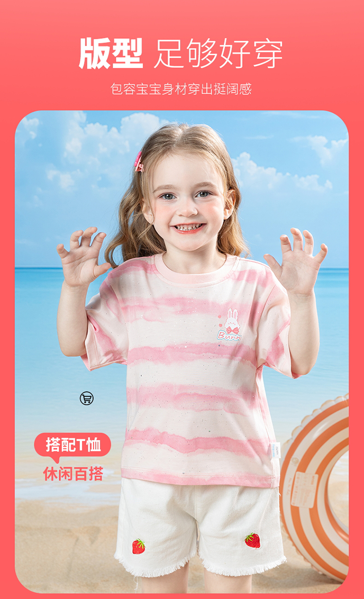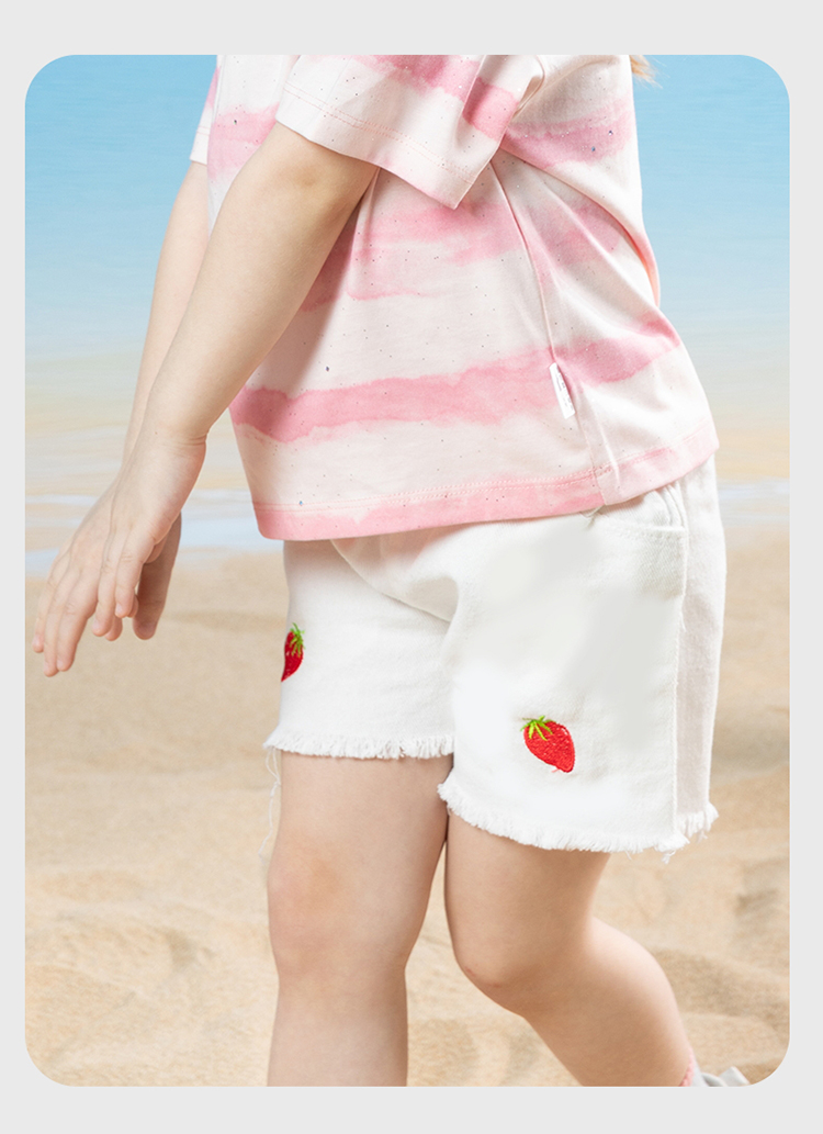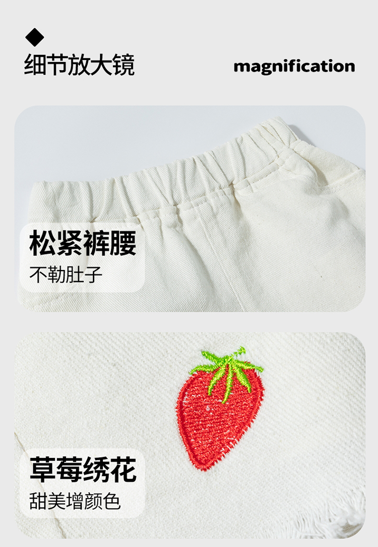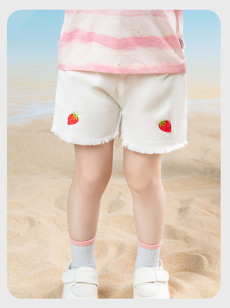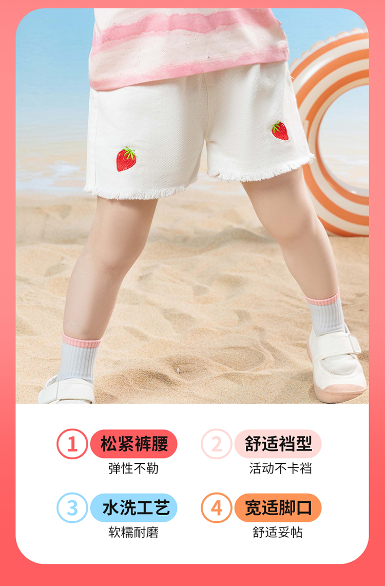 贝贝怡【甜心草莓刺绣】夏季新款女童轻薄柔软牛仔短裤时尚清爽休闲短裤ZB2EK037