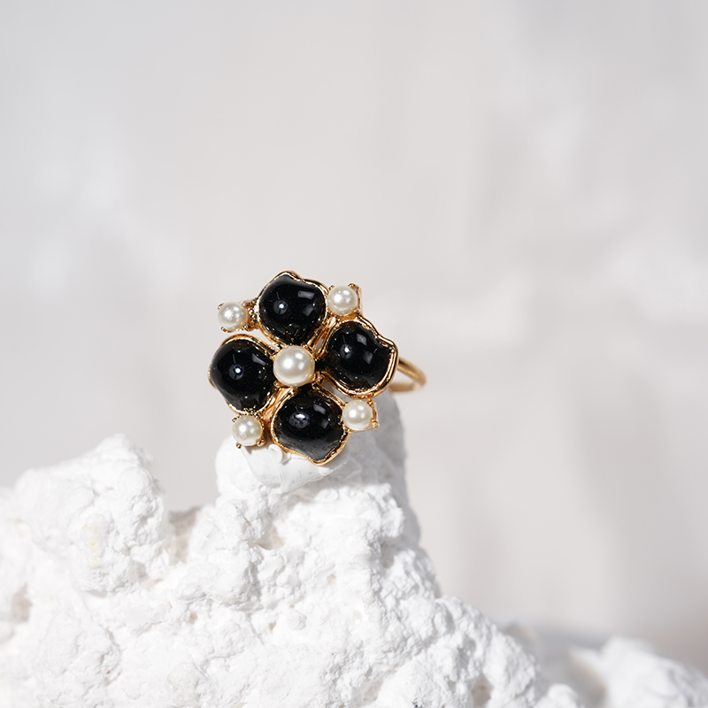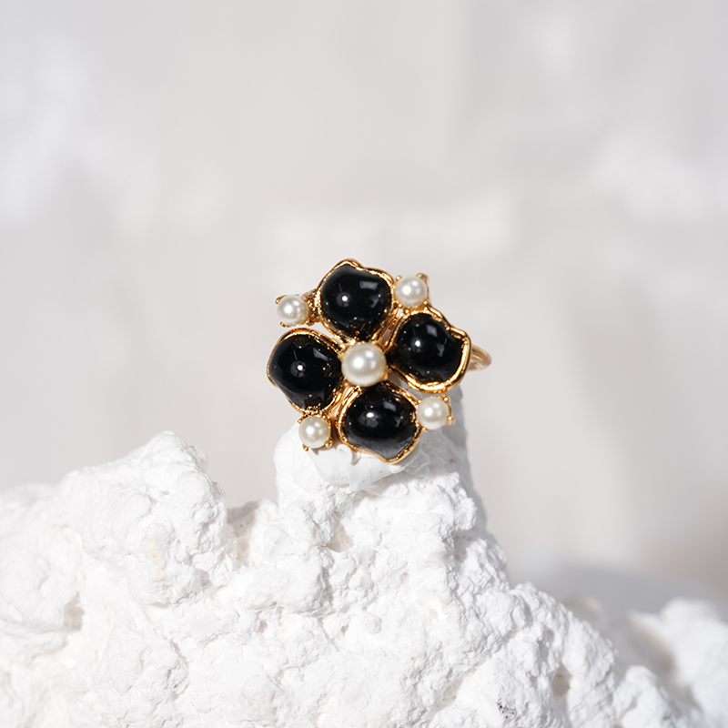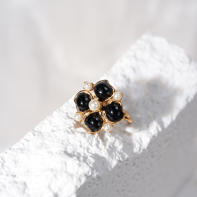 订购5个月到|Gripoix Paris-Clover-黑色 四叶草 珍珠 戒指[法国设计师]