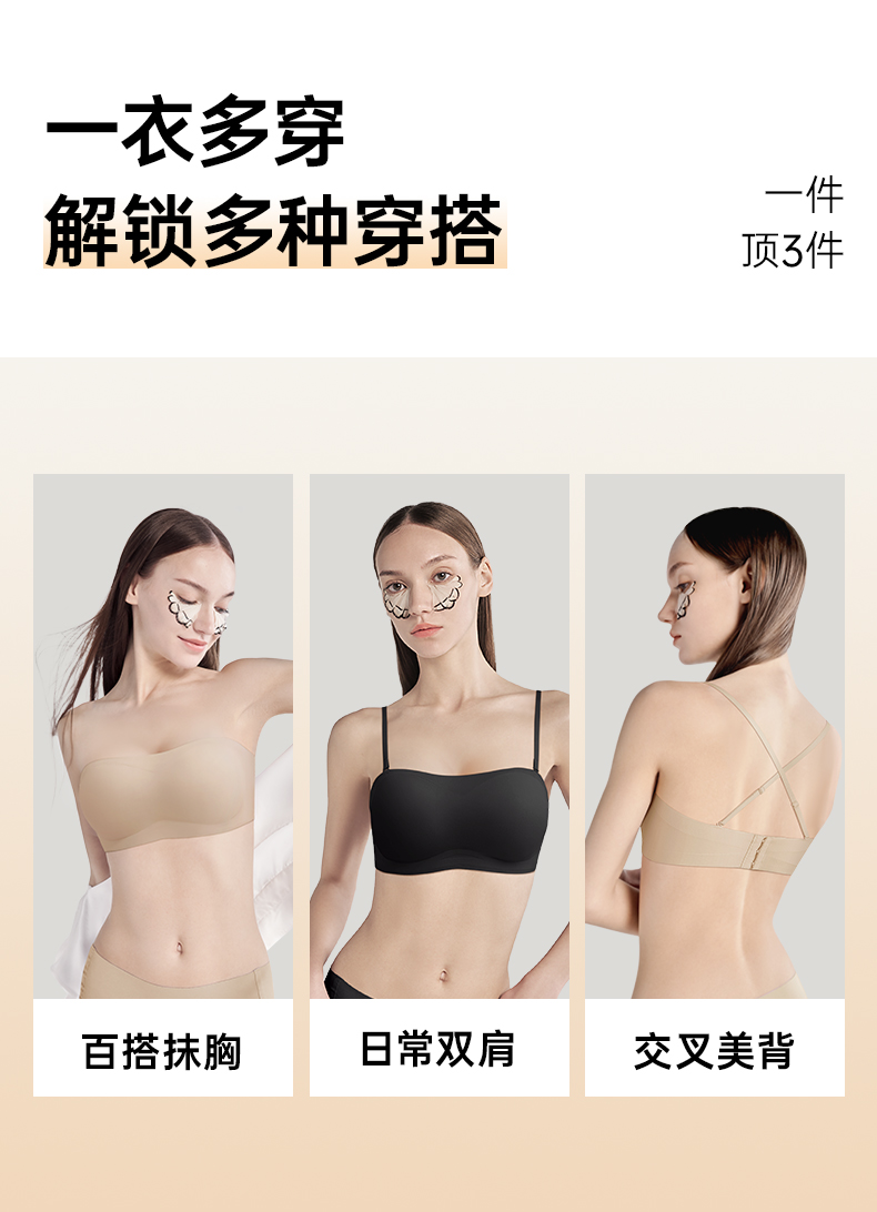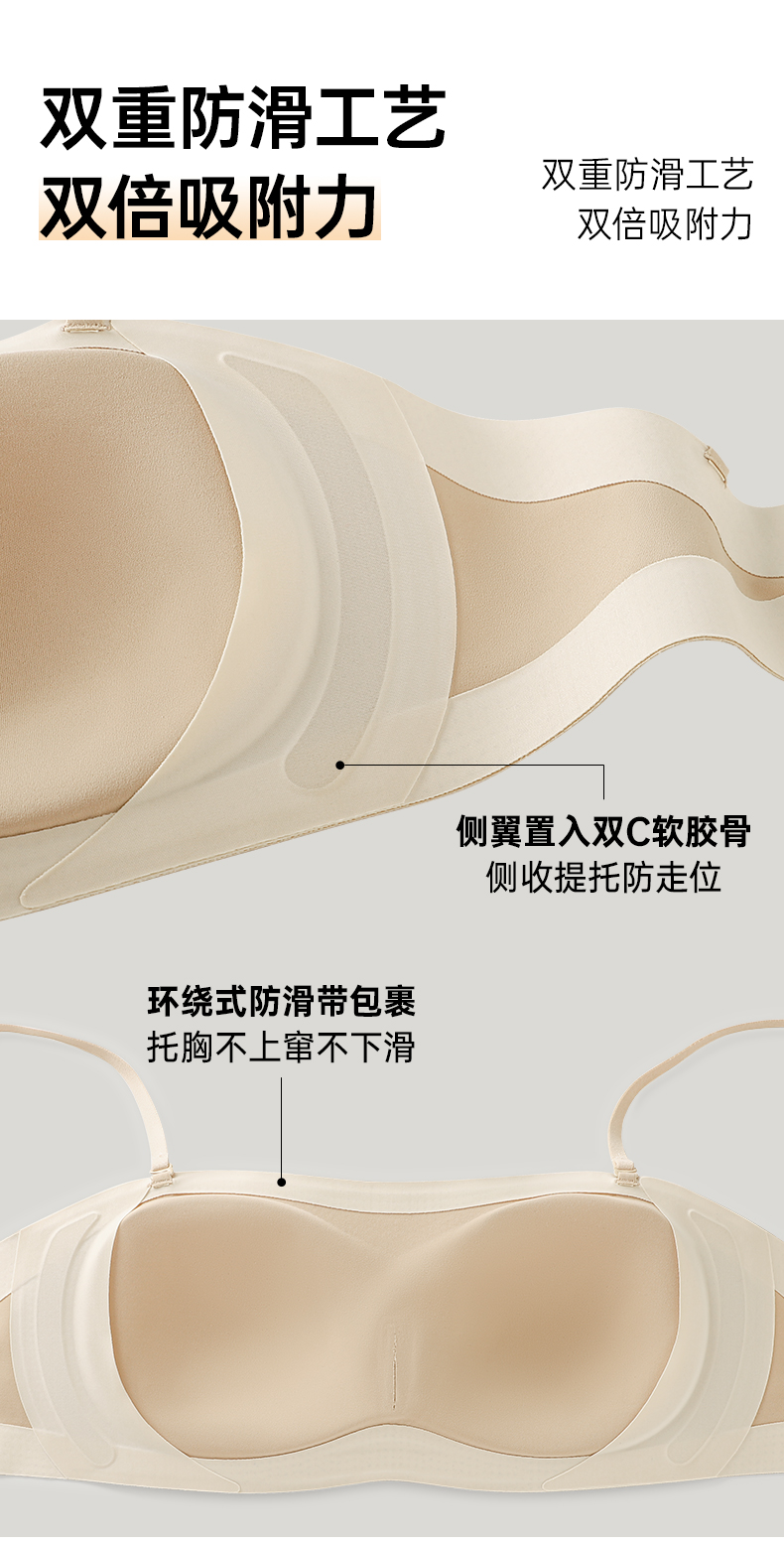 A3-【A-B杯】【无肩带显大内衣】润微小胸聚拢显大抹胸无肩带内衣女防滑不会掉隐形无痕美背半杯 不会掉2.0+稳稳杯【小胸-半杯】