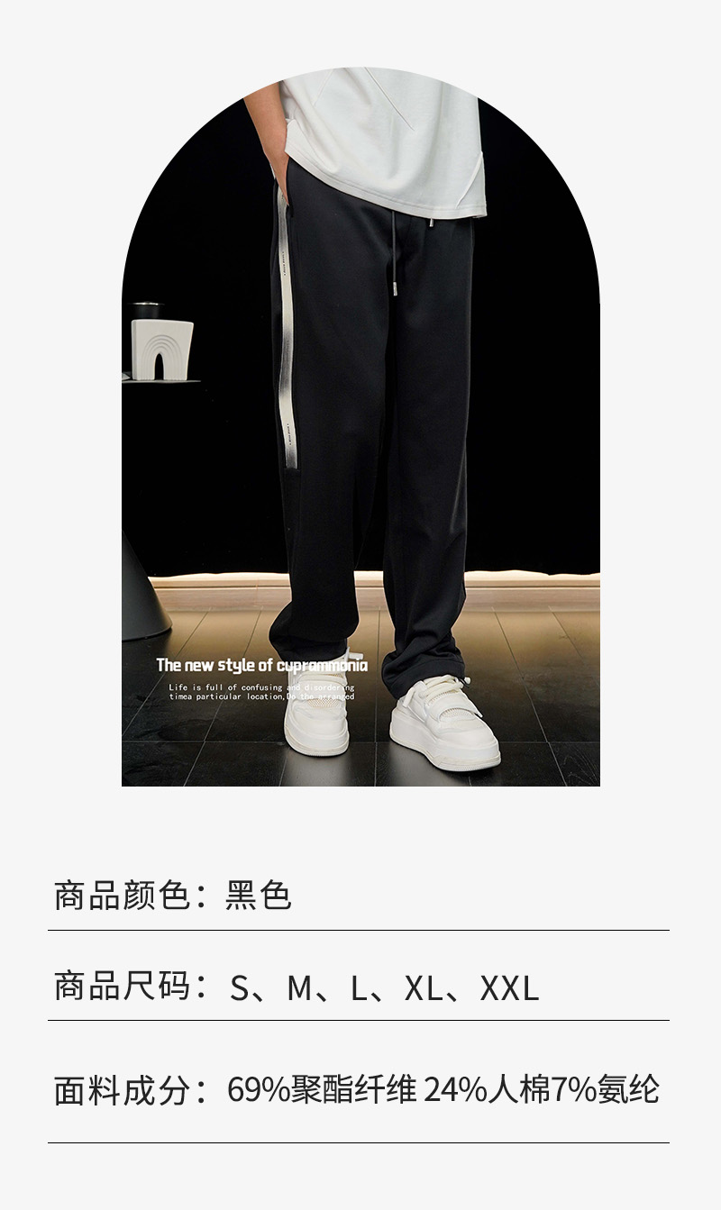 【男装】抽绳弹力腰侧字母织带休闲长裤9611100004