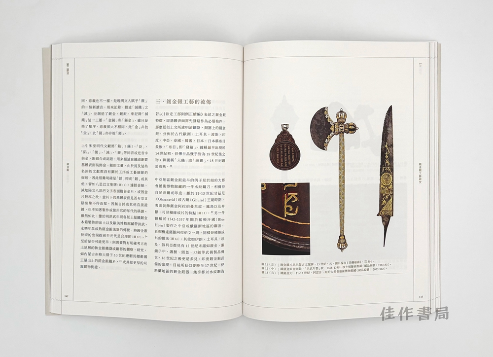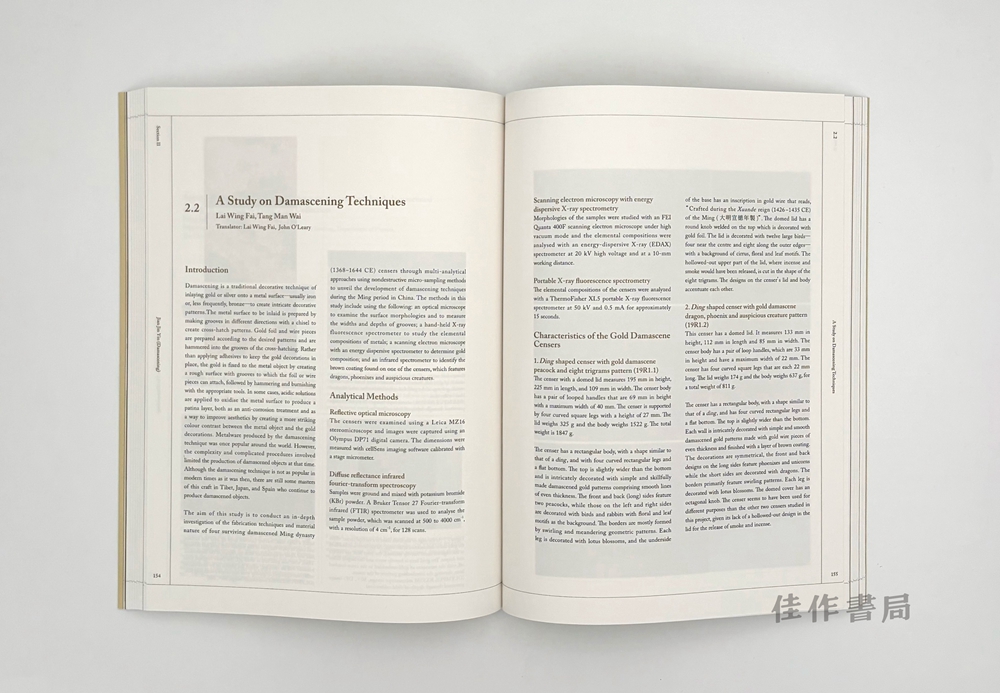 Since 2014, the Art Museum of The Chinese University of Hong Kong, the Chow Tai Fook Master Studio, and several other institutions have launched a research project on ancient Chinese gold craftsmanship, a multidisciplinary and comprehensive investigation of precious metal processing and craftsmanship spanning 3,500 years that includes art history, archaeology, scientific testing, and experimental restoration. The research has entered its second phase since 2018, focusing on the three major techniques of gold and silver inlay, damascene, and the production and use of gold wire. Written by Xu Xiaodong, Tong Yu from the Art Museum, and Lai Wing Fai, Tang Man Wai from the Conservation Office, LCSD, this book is a showcase of the results of the second phase.