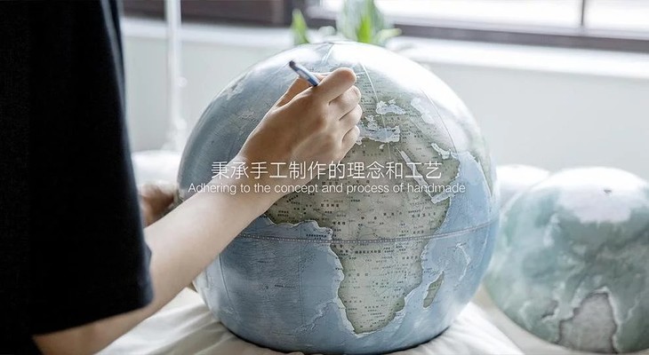 我们的贴图师将国标高清图纸经手工剪裁,划线,定位,拉伸等多道特殊工艺处理后,让每片图纸都平整地贴合在球体表面,让每一片海洋陆地都归属他们应处的位置,经纬线相互衔接。这个过程中,纸张的厚度,纹理,湿度,手掌的力度,每一个环节都不能忽视。真实图纸贴制的球体质感与塑料PVC印制的球体完全不同,其厚重感和高档品质才能衬托出家居环境的艺术氛围。当然,我们的每一套图纸都有国家标准审图号、书号,地图信息完整、准确。