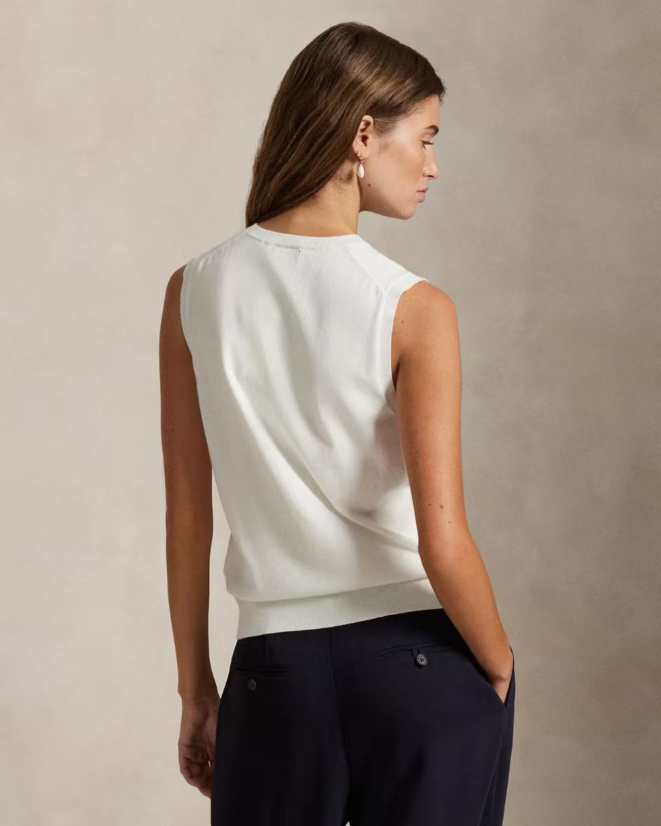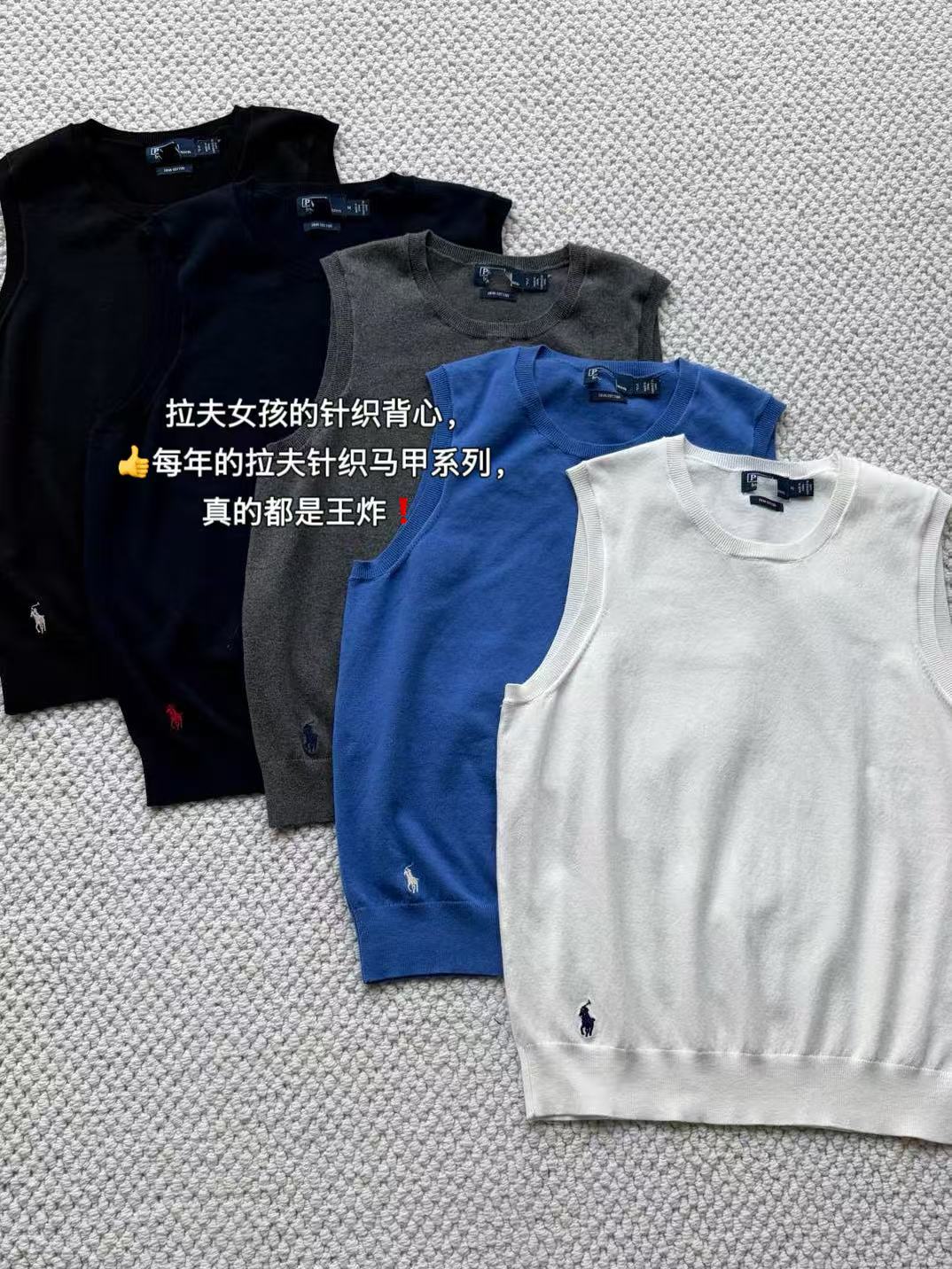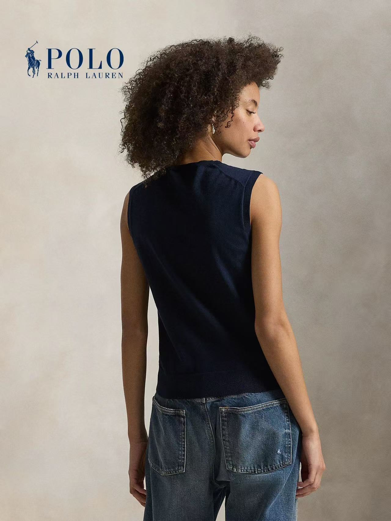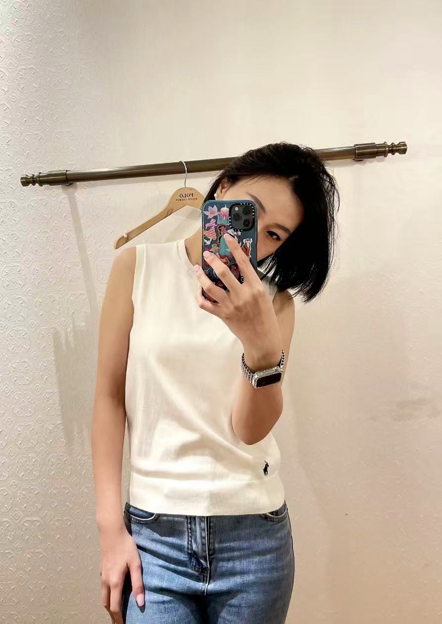 右侧下摆的标志性小马刺绣,纯正刺绣细节,老钱风气质的马甲背心。