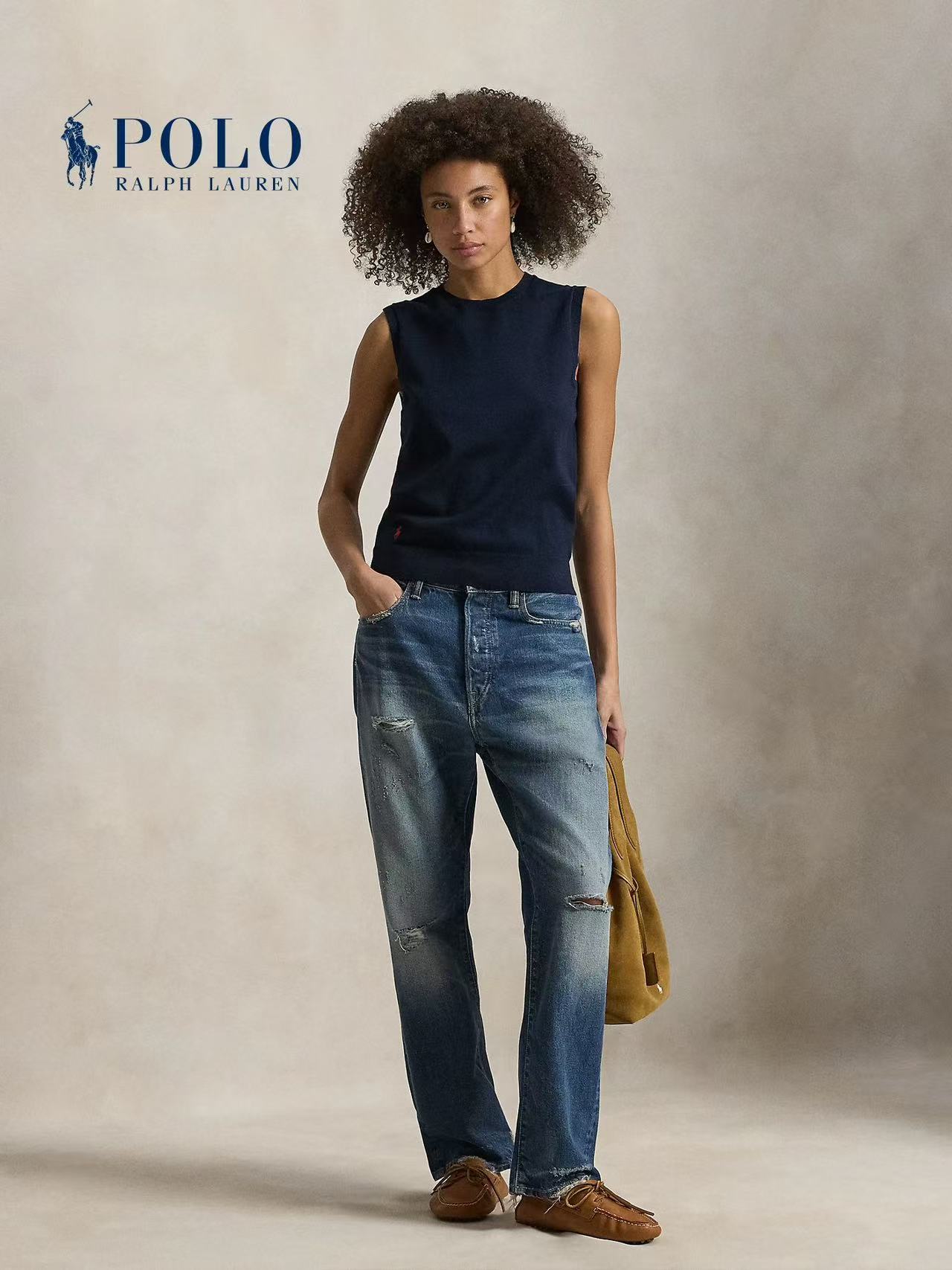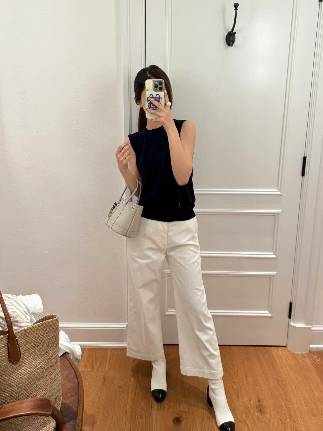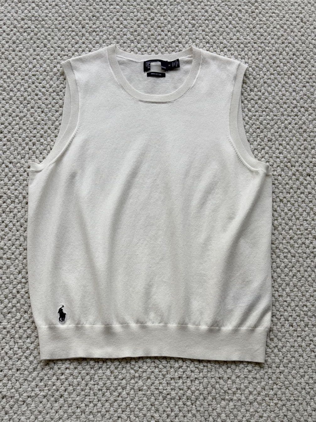 右侧下摆的标志性小马刺绣,纯正刺绣细节,老钱风气质的马甲背心。