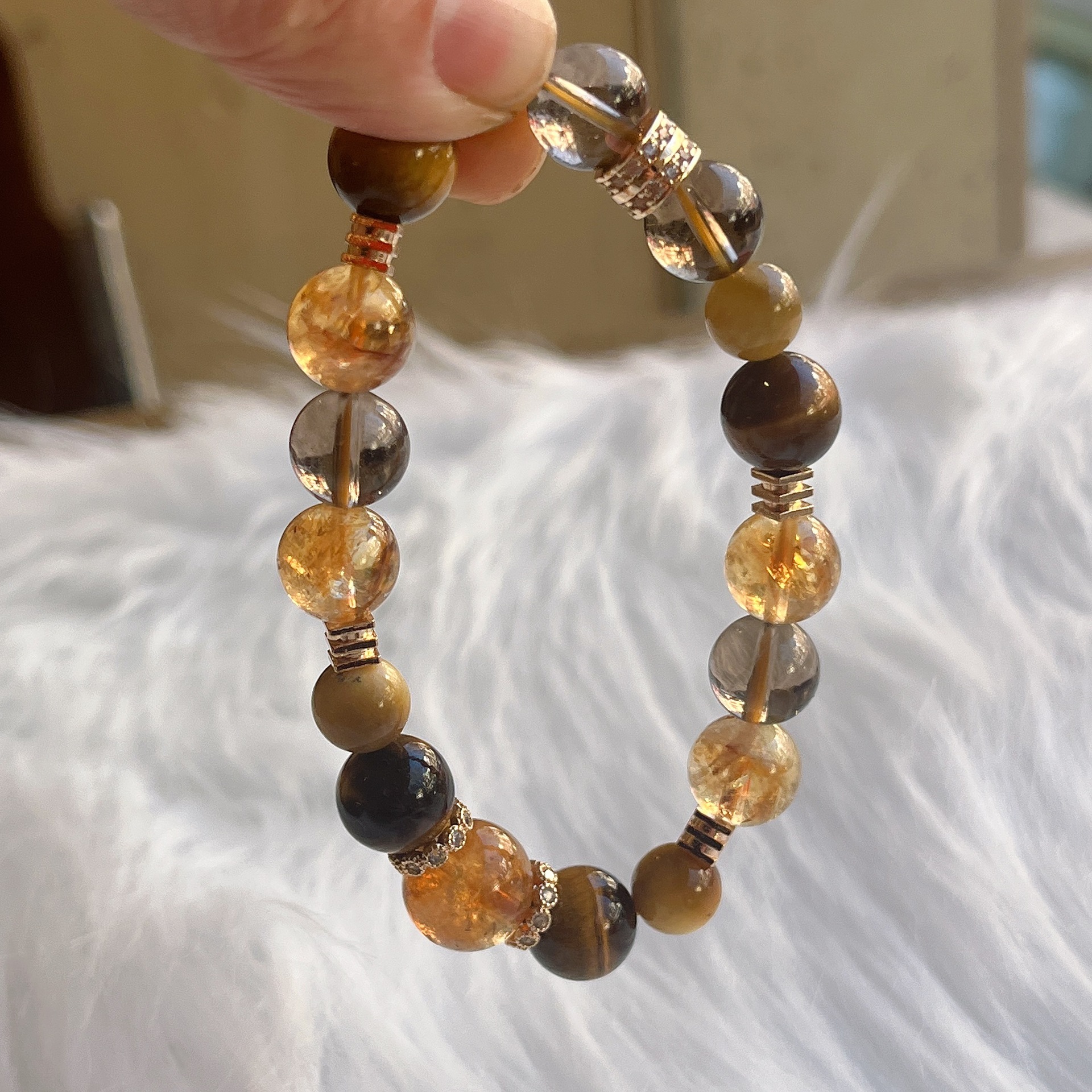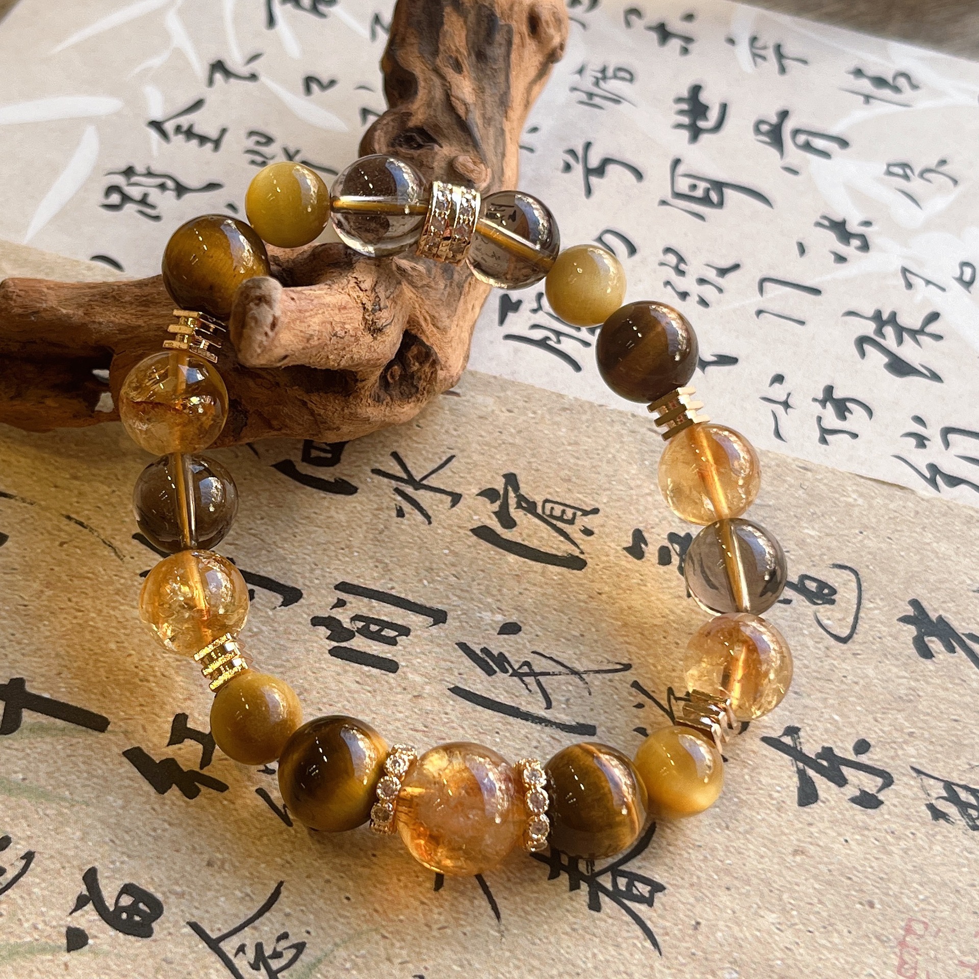 【大金霸】六鑫珠宝 天然黄塔晶虎眼石茶水晶手串