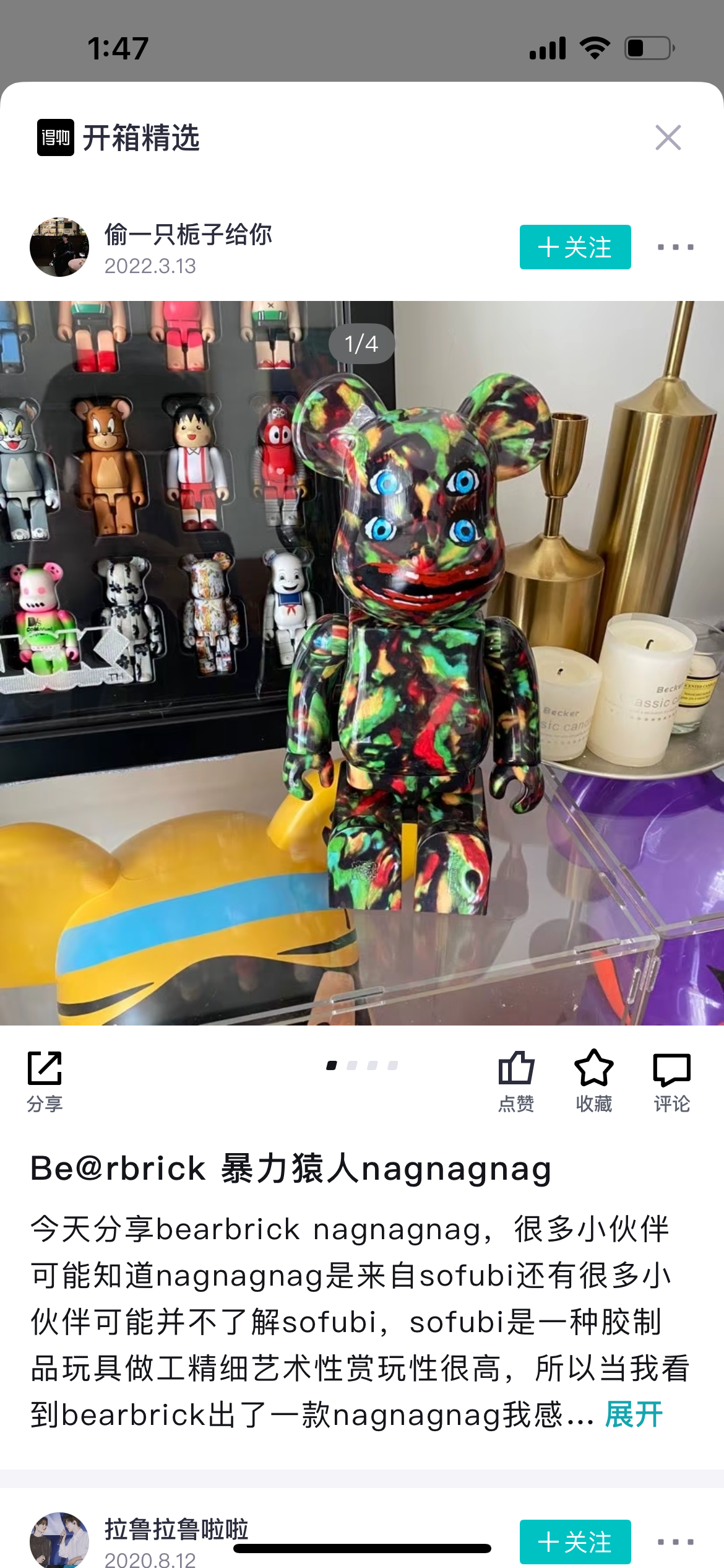 20个 原厂正品! !bearbrick 400%积木熊暴力熊艺术家联名款家居摆件手办 四眼款