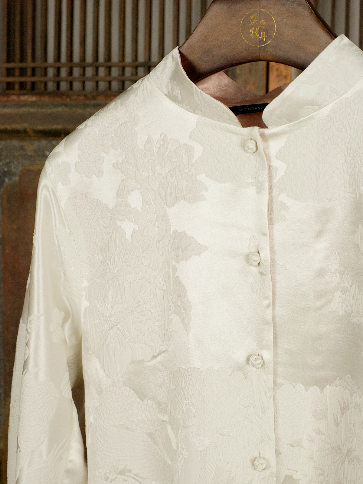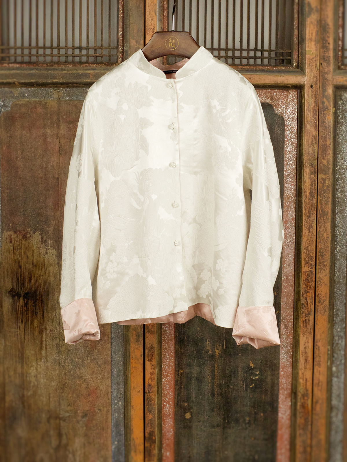 盛唐牡丹| 珍珠白真丝竹子纹偏襟上衣