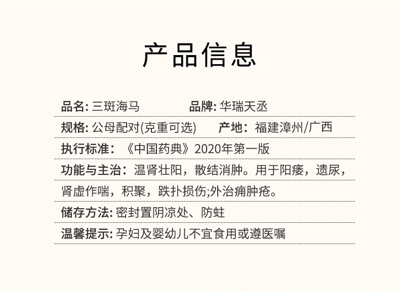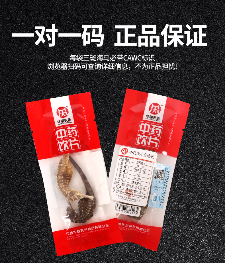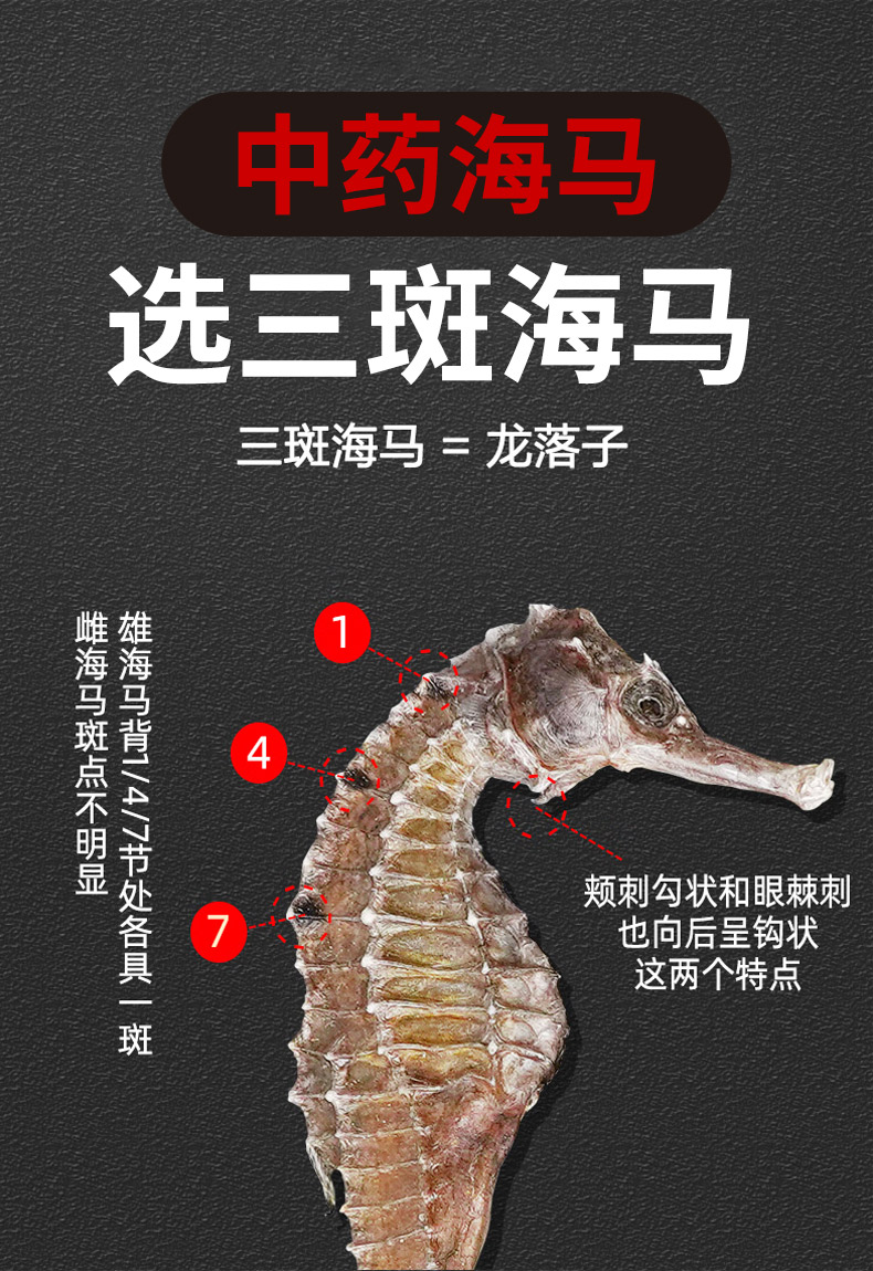海马中药饮片 华瑞天丞三斑公母配对·带标识 煲汤滋补泡酒药材小包装多规格