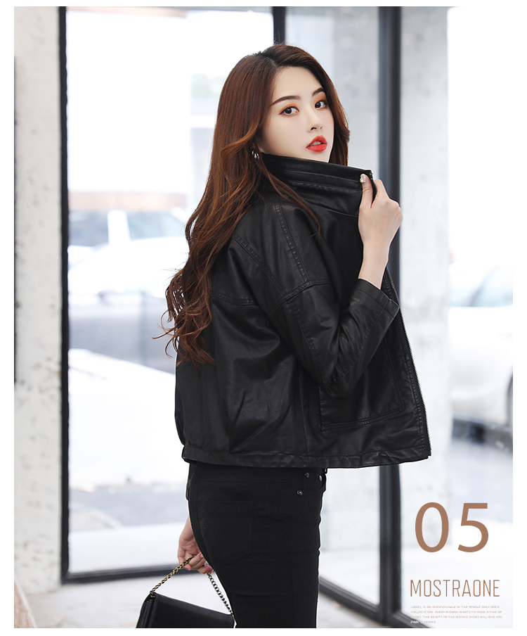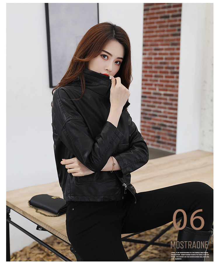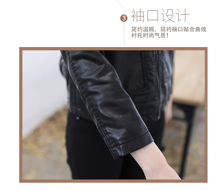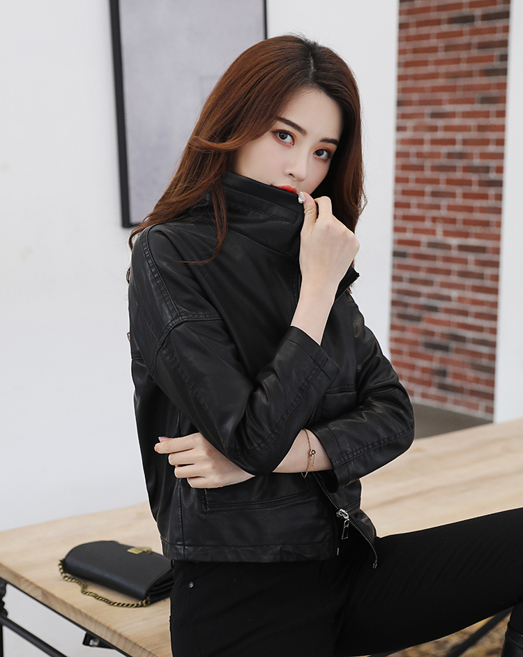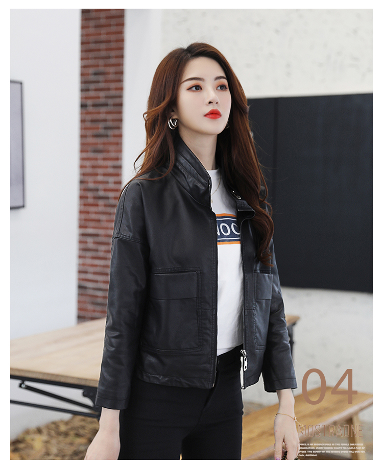 【夹克】立领小皮衣女短款外套春秋休闲韩版宽松夹棉机车款夹克