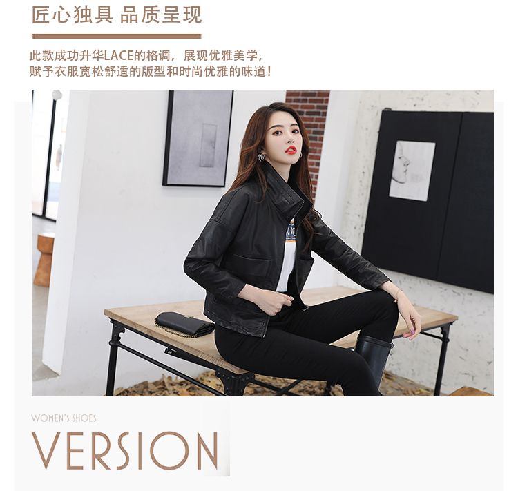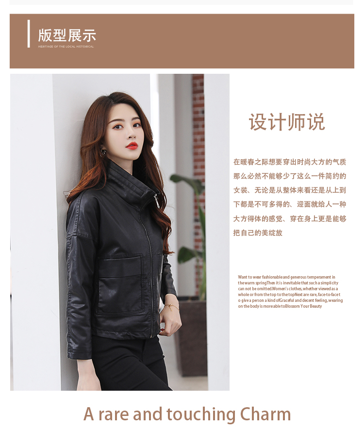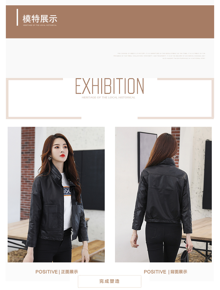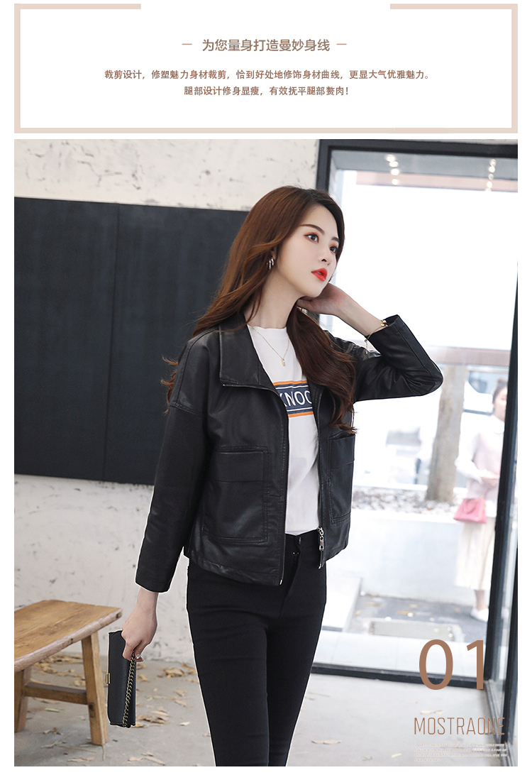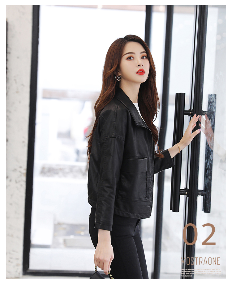 【夹克】立领小皮衣女短款外套春秋休闲韩版宽松夹棉机车款夹克