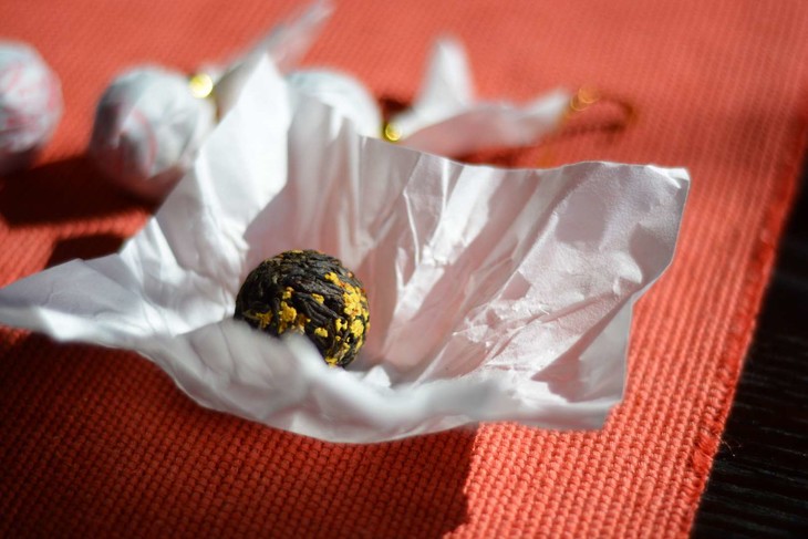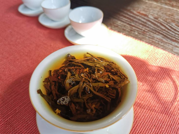 选用西双版纳产区百年树龄大叶种茶树鲜叶制作而成的古树红茶,搭配广西桂花核心产区顶级包心金桂花。