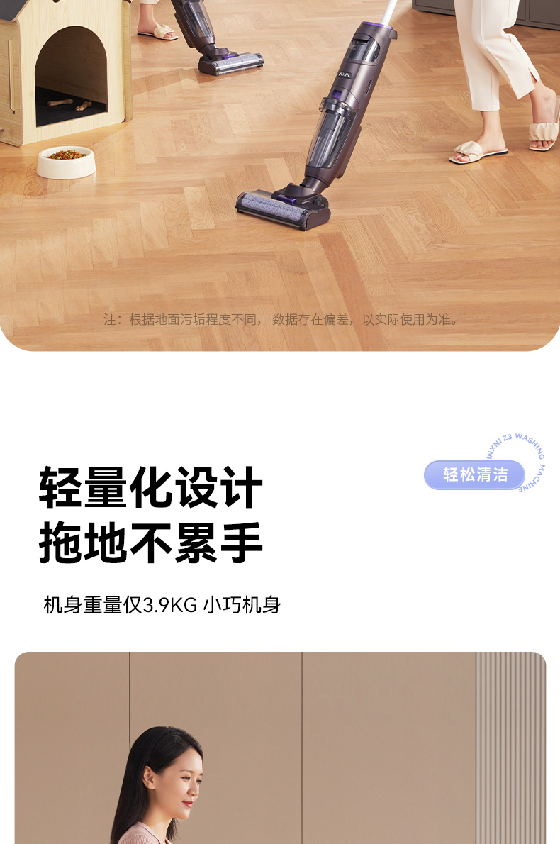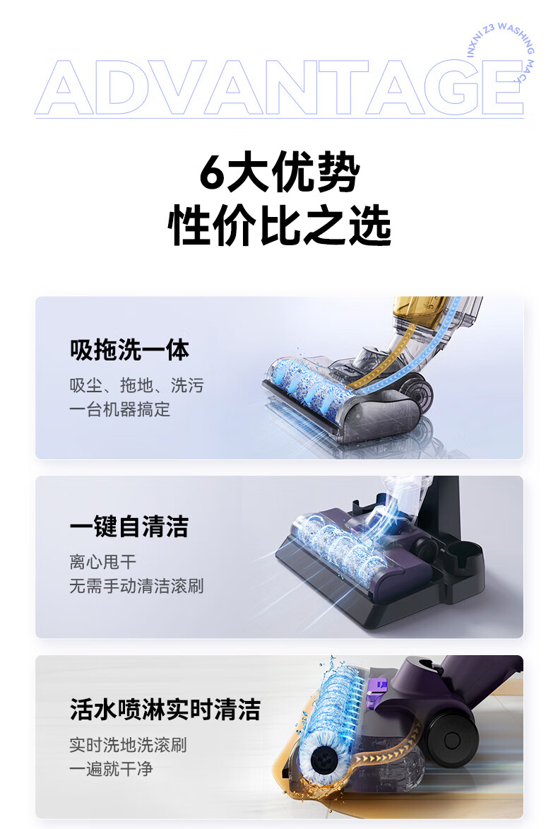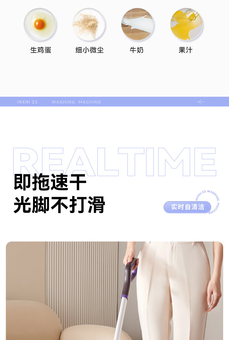 以内(INXNI)洗地机Z3 家用智能清洁洗拖地机吸扫一体机