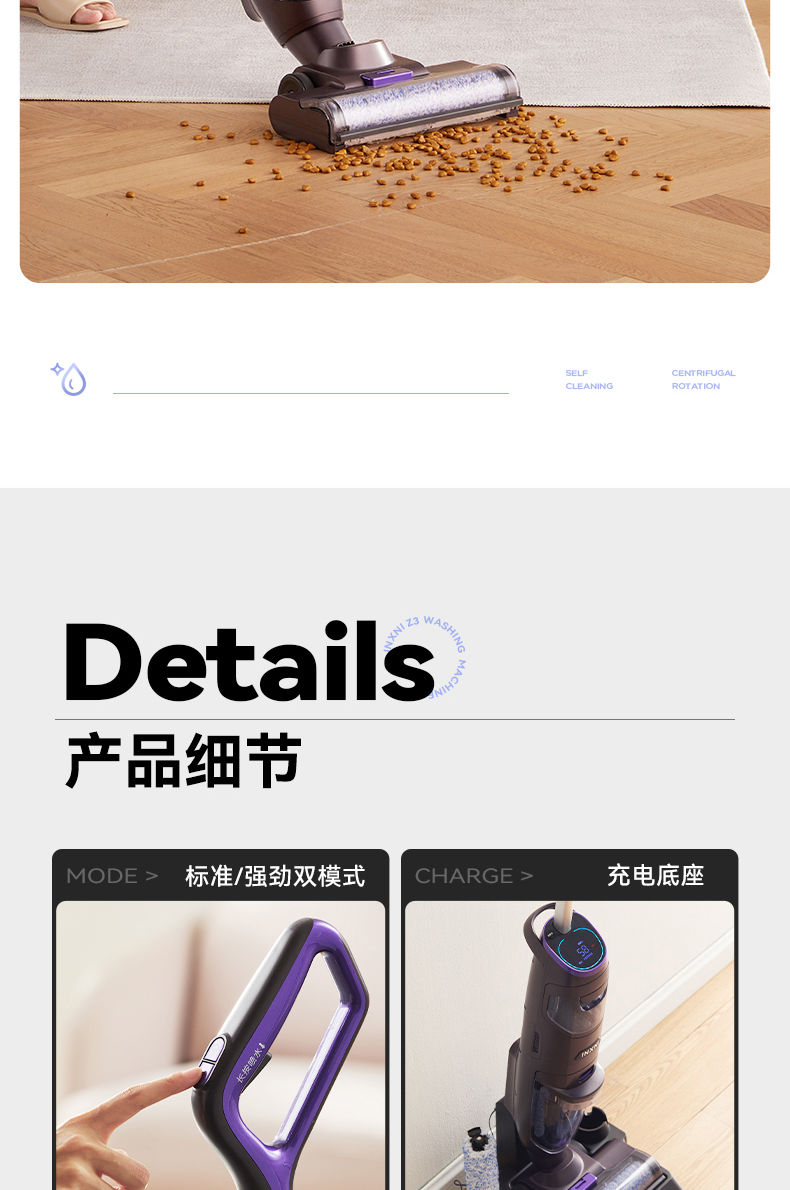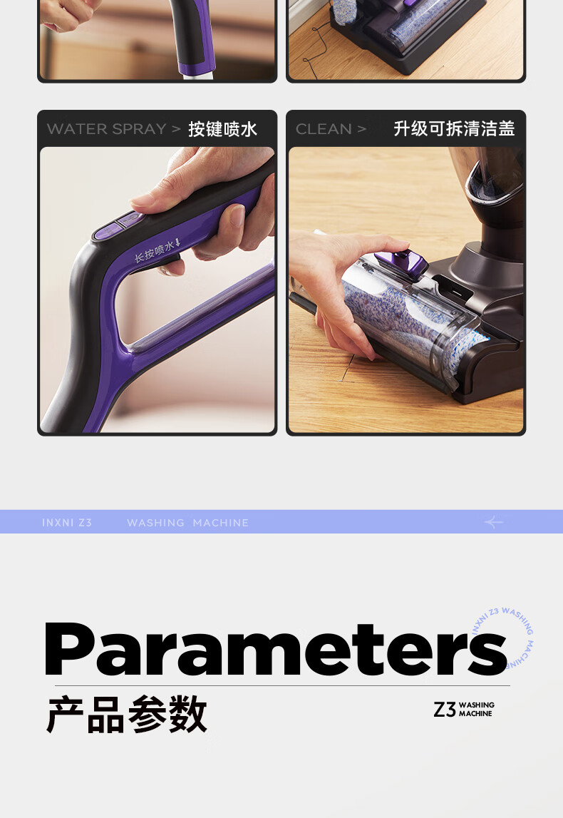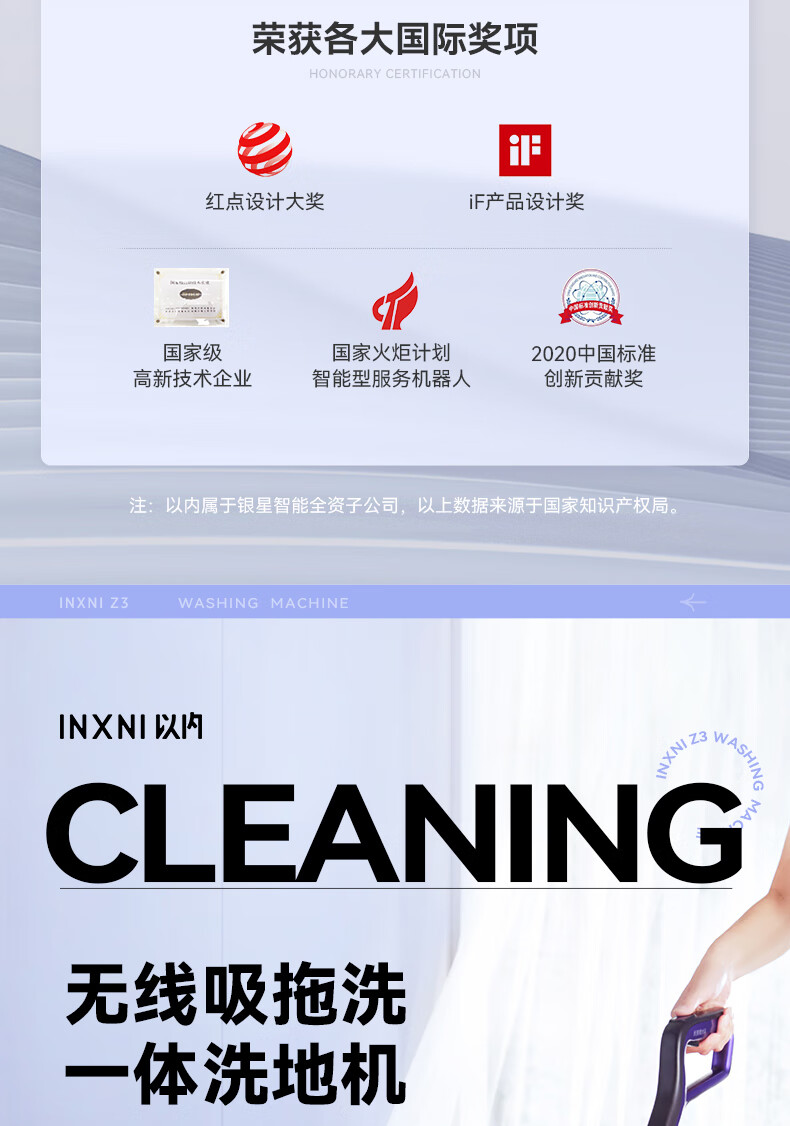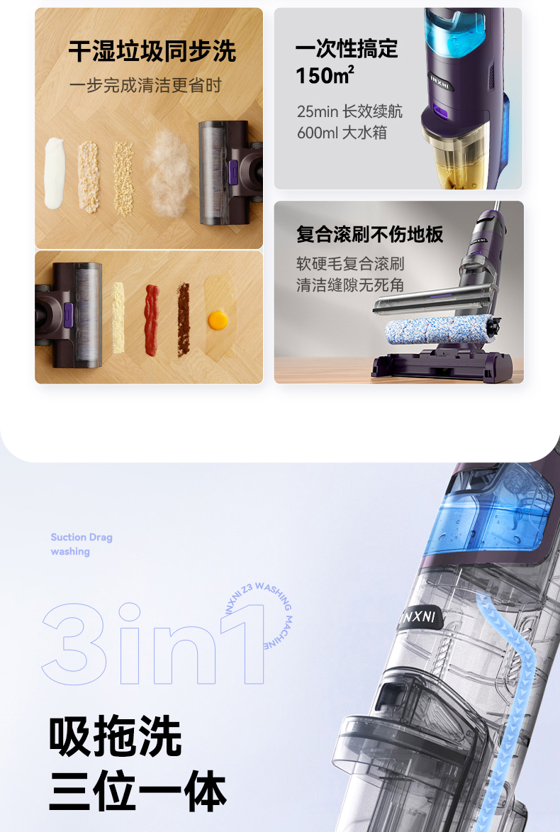 以内(INXNI)洗地机Z3 家用智能清洁洗拖地机吸扫一体机