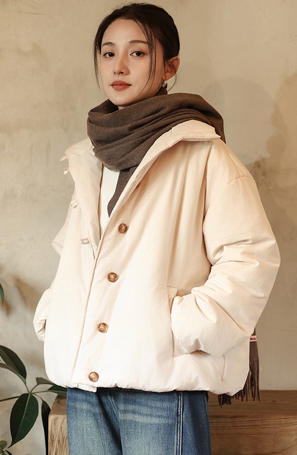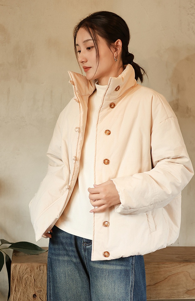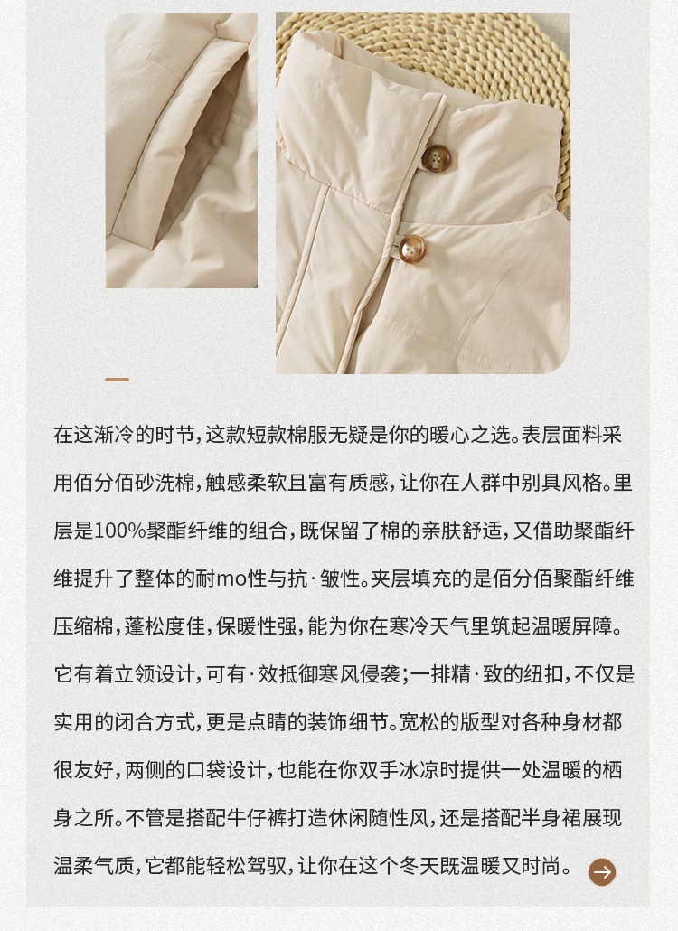 自带温柔滤镜,奶油感棉服,韩系好百搭,秋冬穿适配度直接拉满!夹棉锁温性超强。