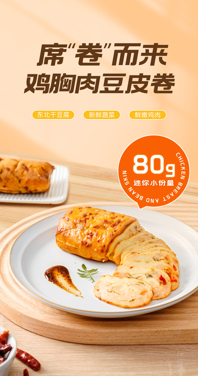 【健身教练推荐的零食】高蛋白膳食豆卷柏慧豆皮肉卷80g*8鸡肉卷肠干豆腐卷蔬菜休闲零食