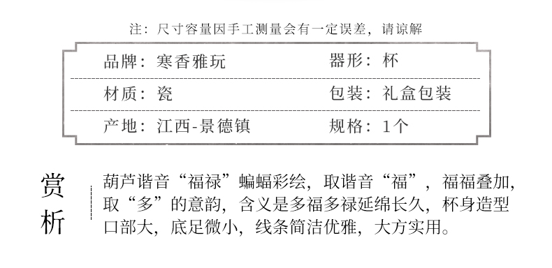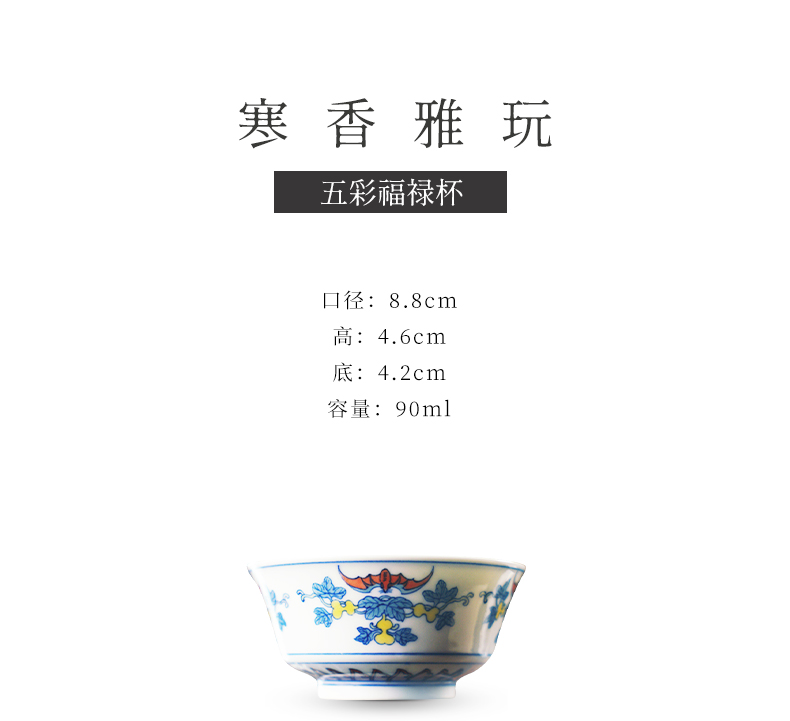 寒香雅玩青花五彩福禄杯(缺货)