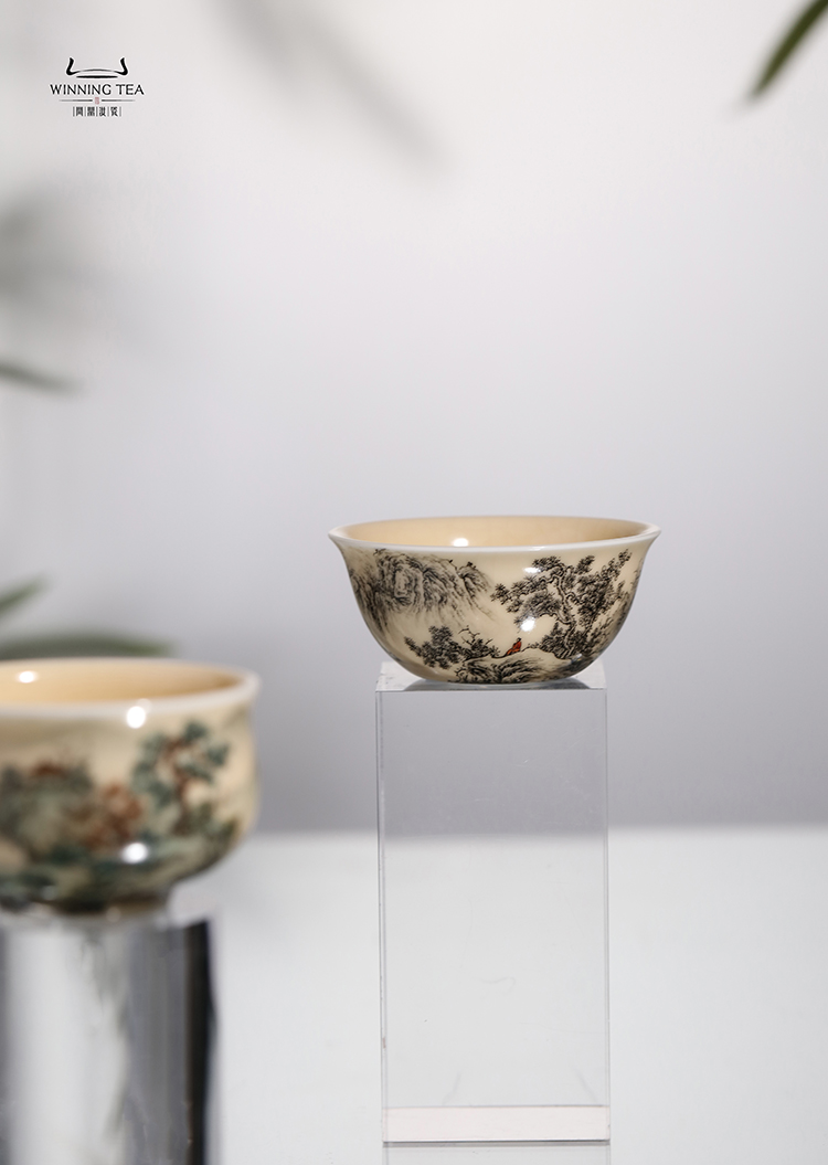 问鼎器度汝窑星娥杯(墨彩山水)