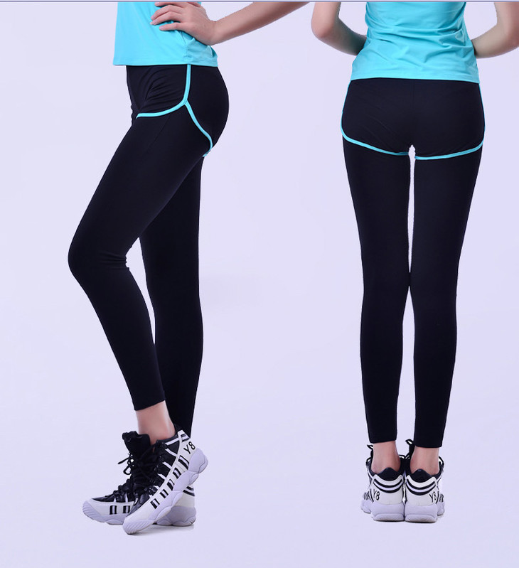 跑步健身运动裤 锦纶假两件长裤显瘦瑜伽裤紧身裤女X06026