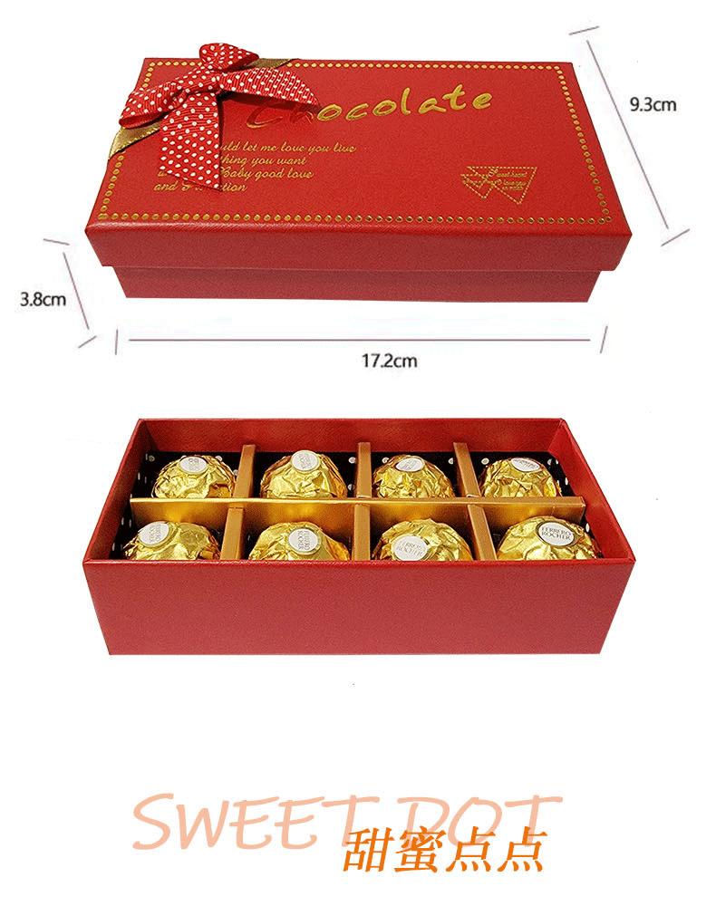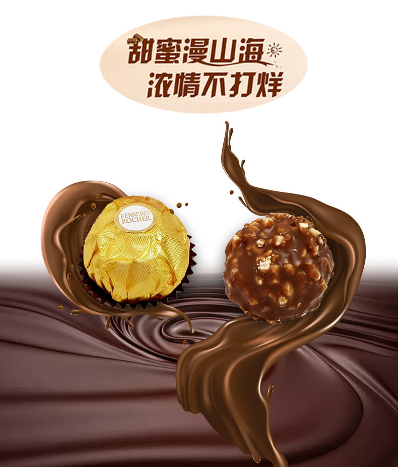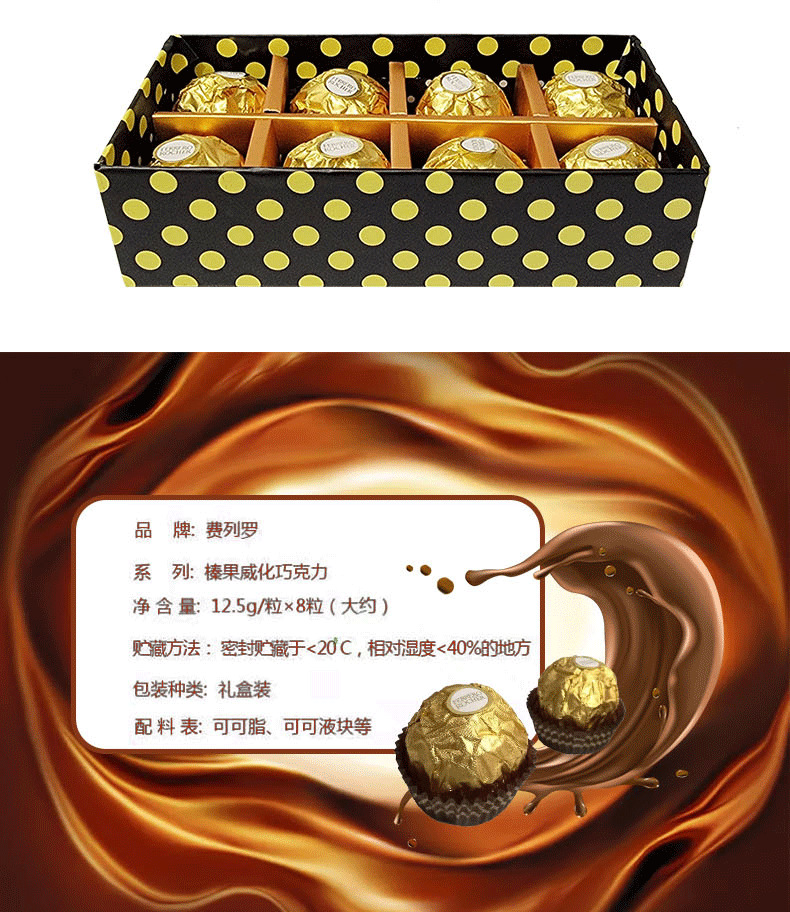 费列罗榛果威化巧克力8颗蝴蝶结纸盒情人节礼盒装(含礼袋)