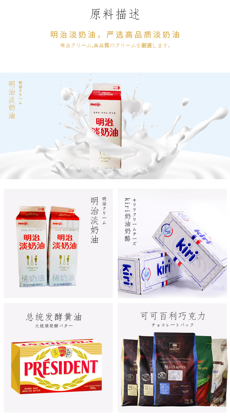 - 主理人毕业于法国蓝带东京校区——高级西点师认证 12年坚持研发高品质水果风味奶油蛋糕