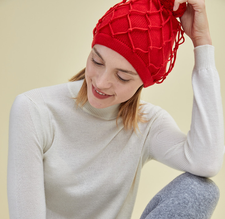 SAND RIVER手工编结网纹帽子。独特的网纹设计,富有现代气息,展现女性自信活泼气质。