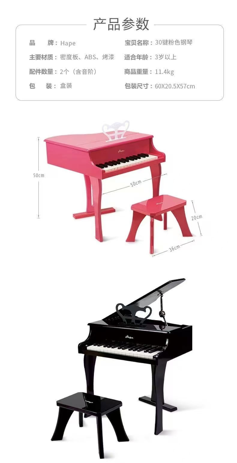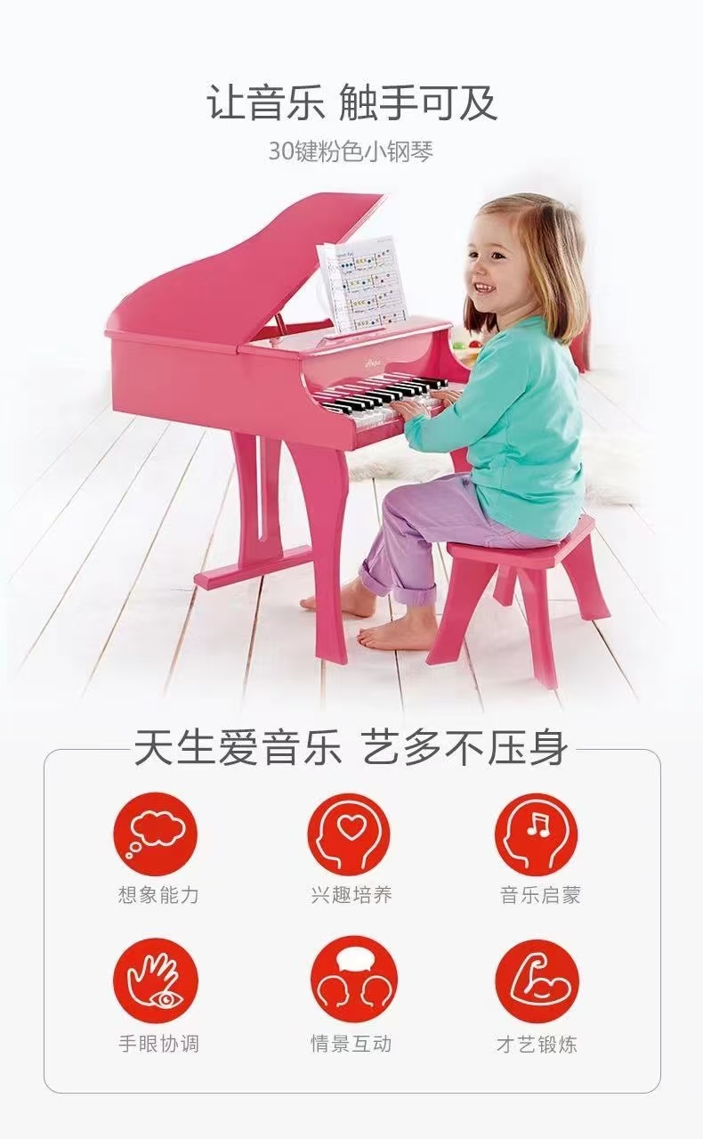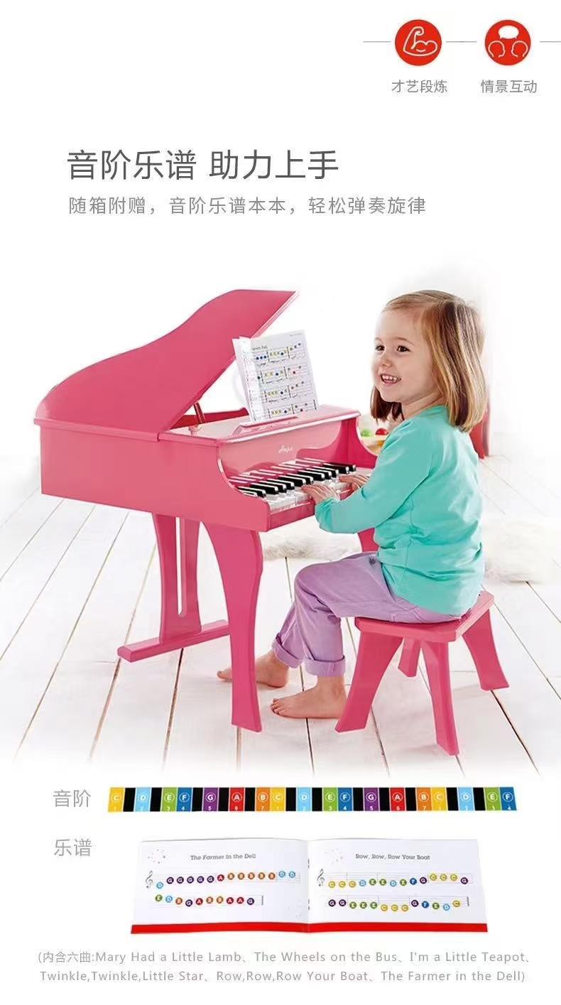 4楼Eubelle欧蓓 Hape30键儿童木质三角机械钢琴 可弹奏 初学者男女孩益智玩具 吊牌价:1198元 活动价:359元