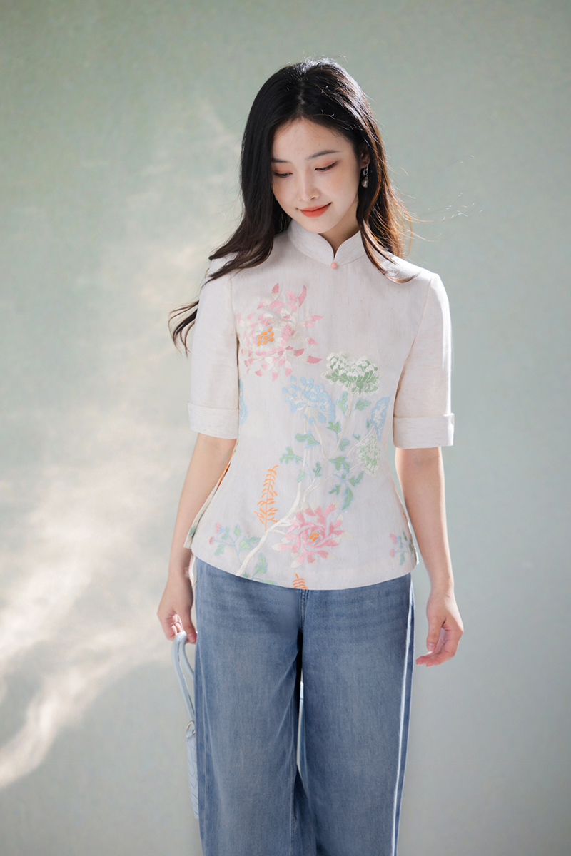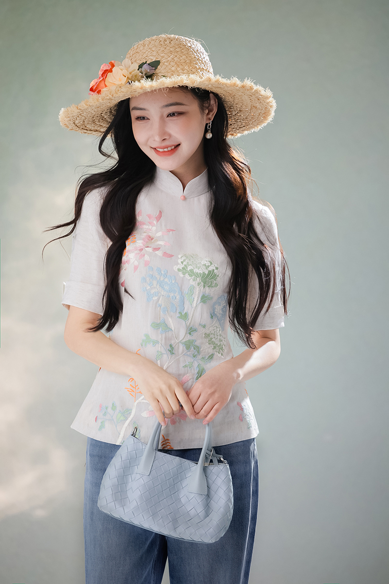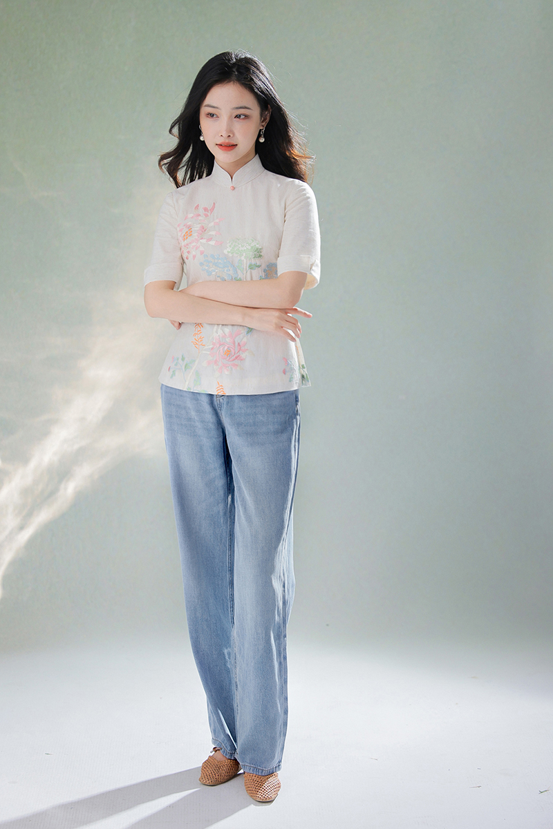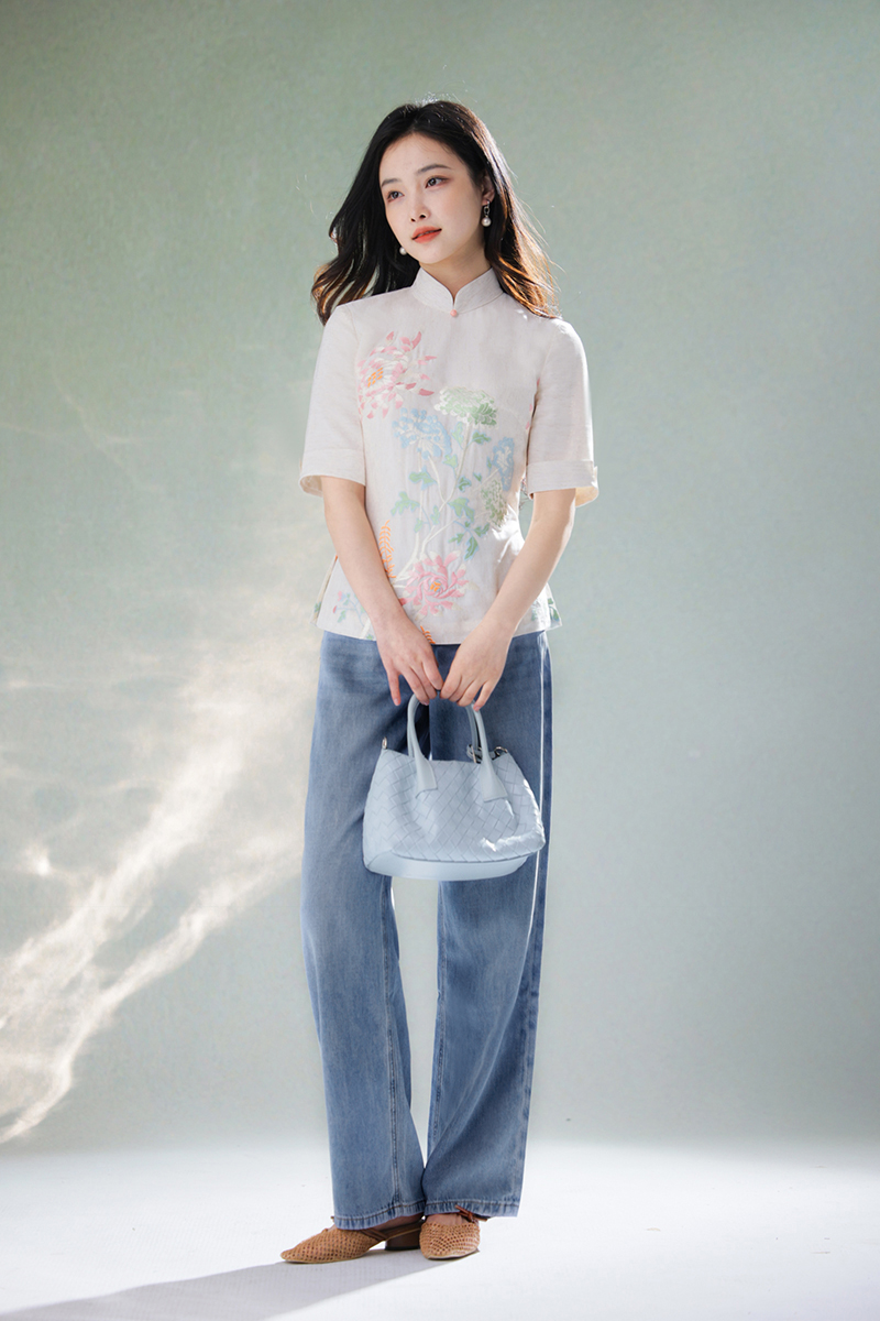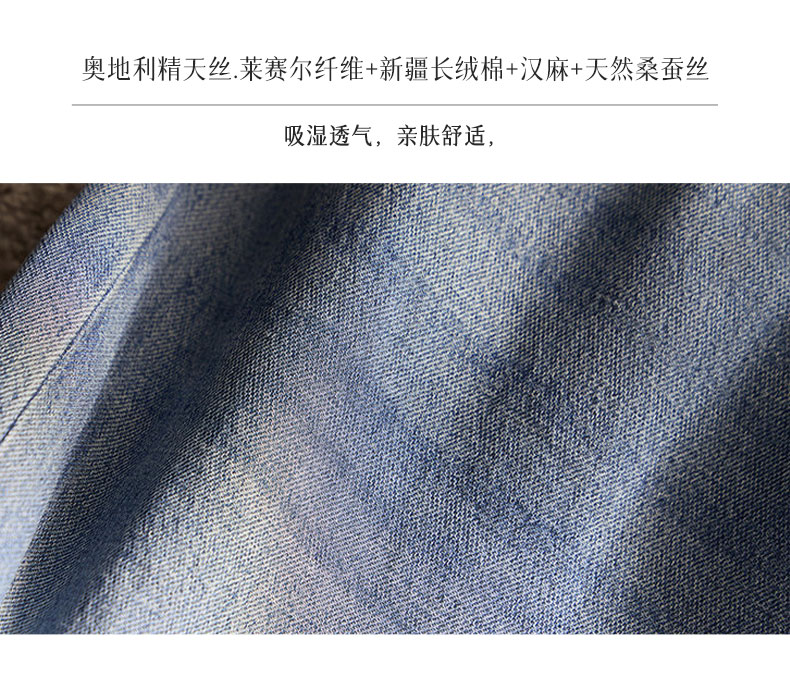 真丝的柔滑光泽与汉麻的粗粝肌理碰撞,形成天然光泽与哑光质感的层次对话。桑蚕丝让面料细腻垂坠,汉麻纤维则带来吸湿排汗的清爽体验~~